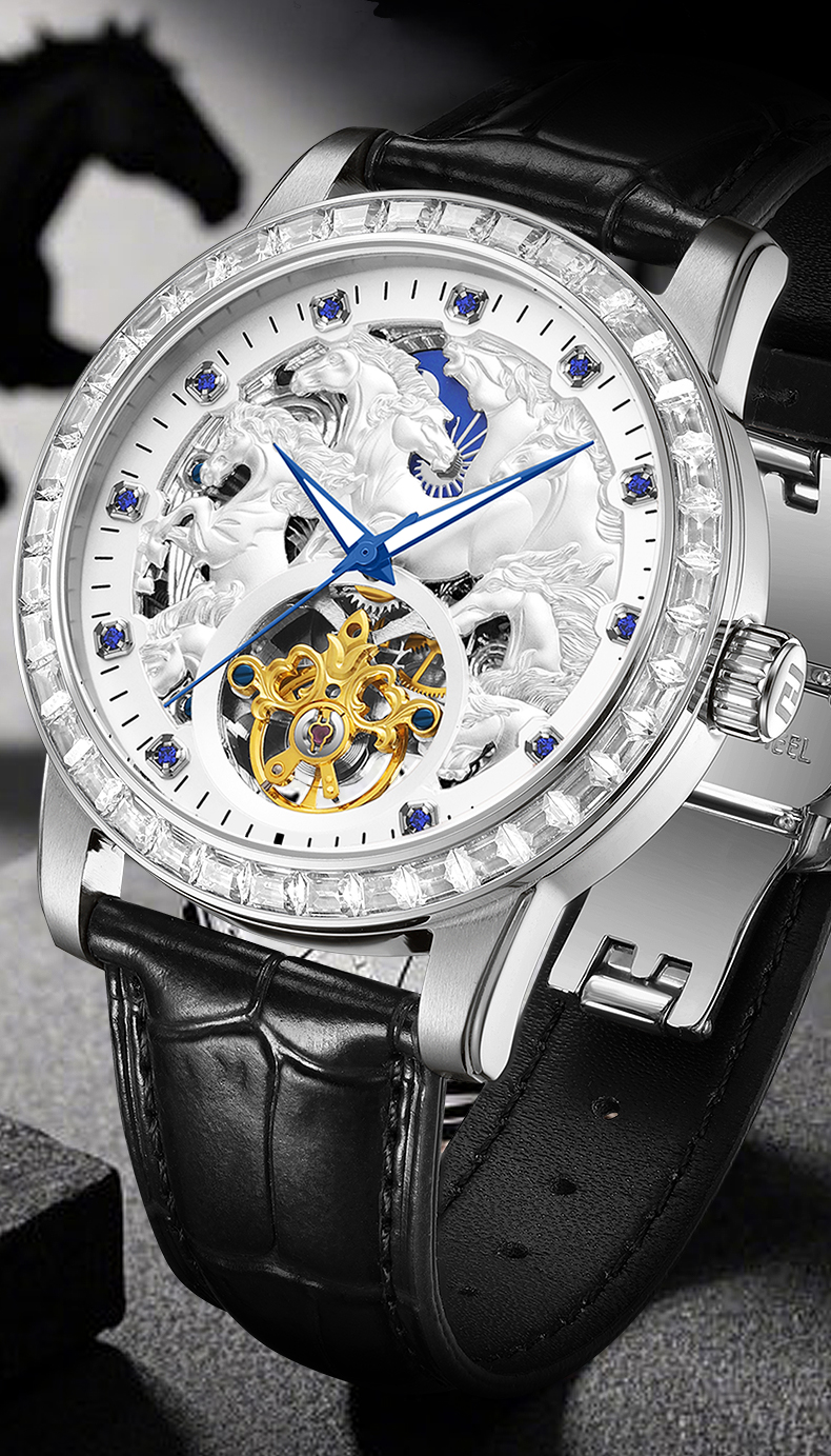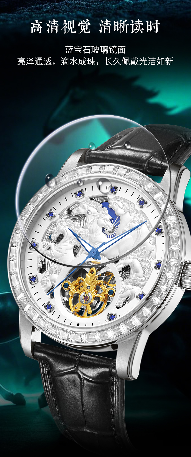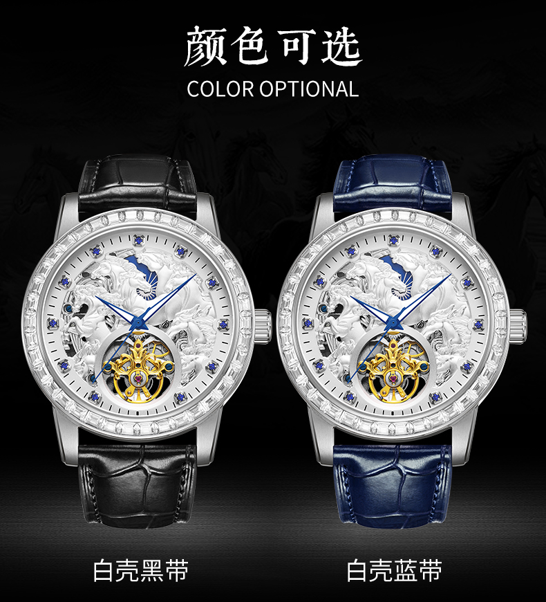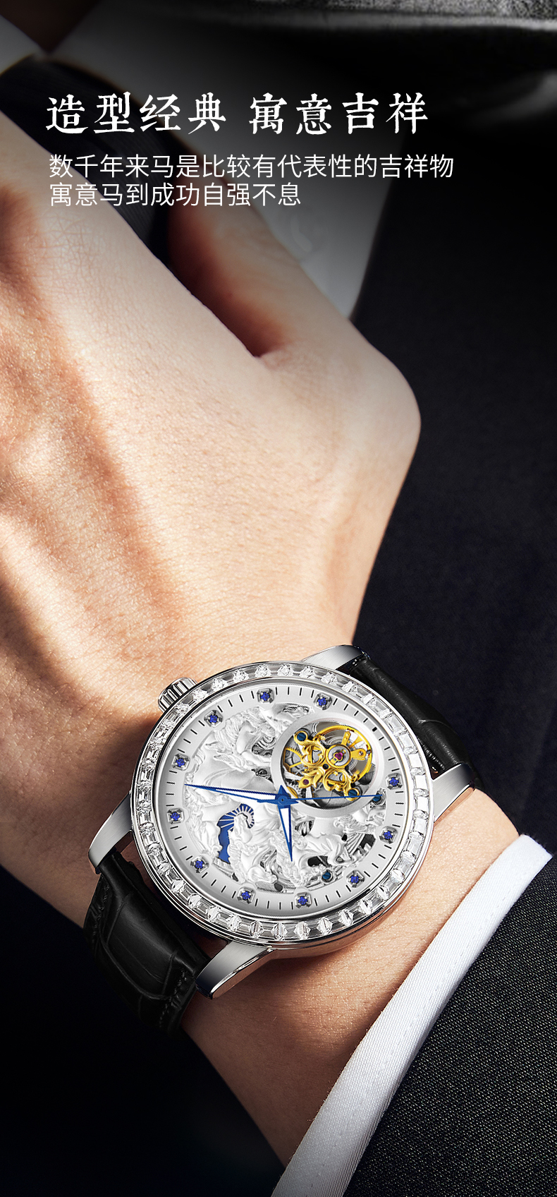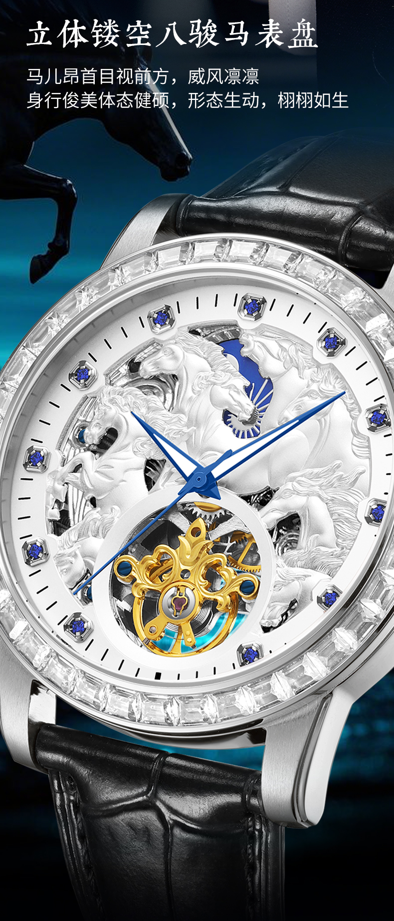 HANBORO men's skeleton eight steed automatic mechanical watch waterproof belt wristwatch 006-2