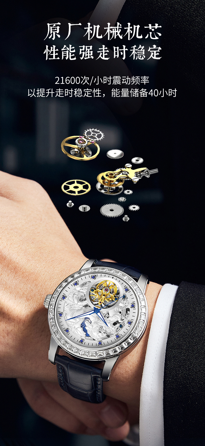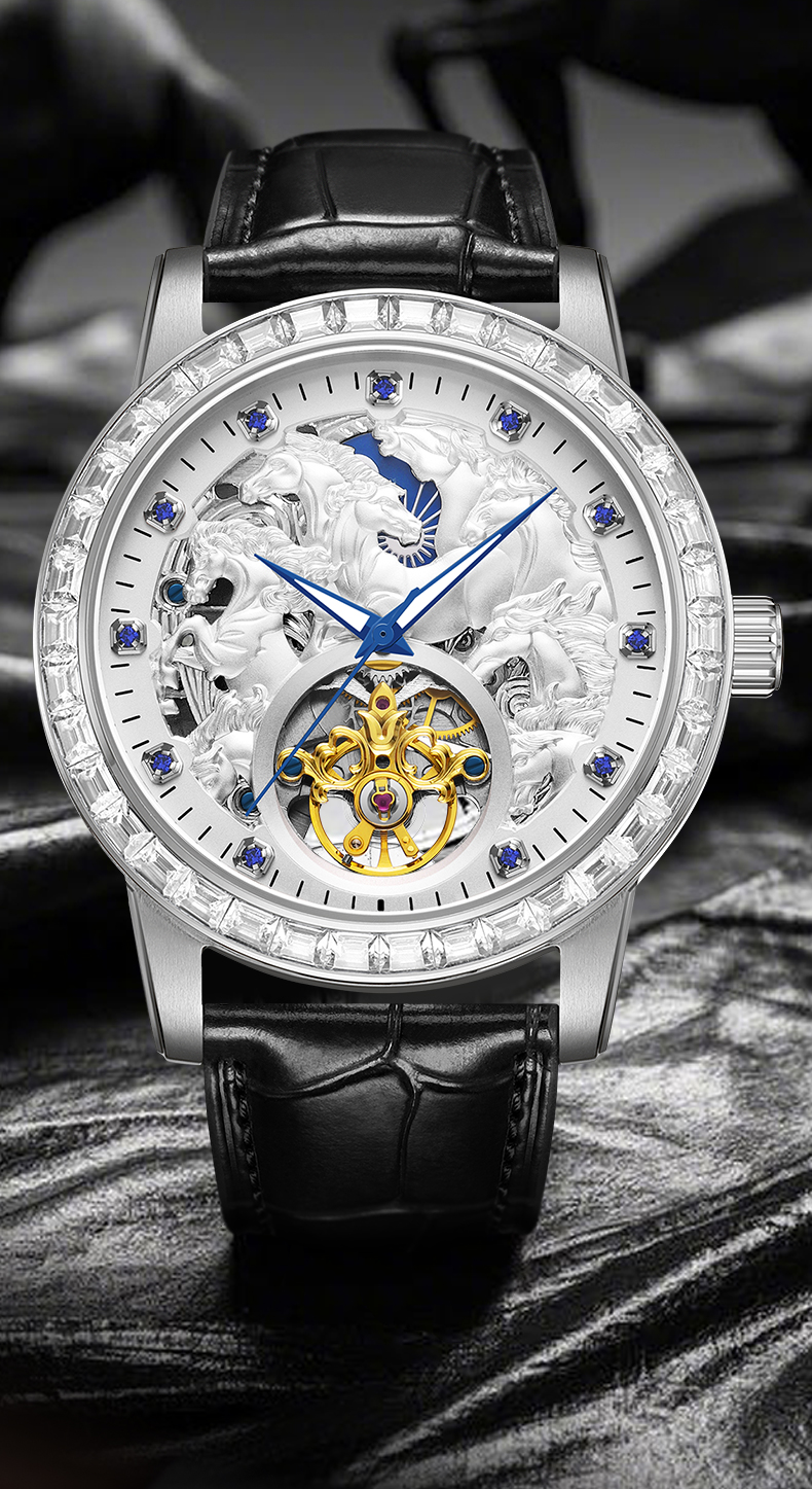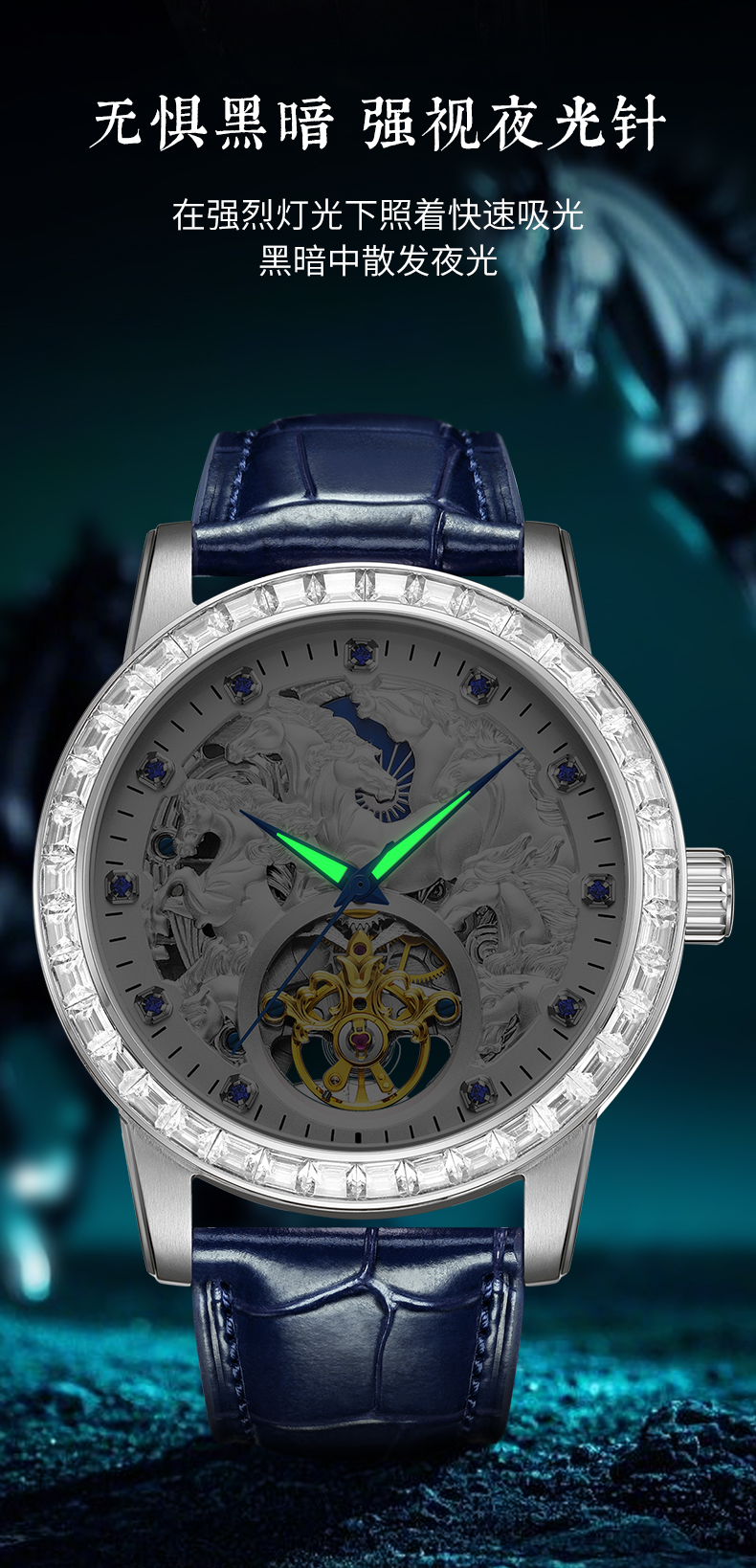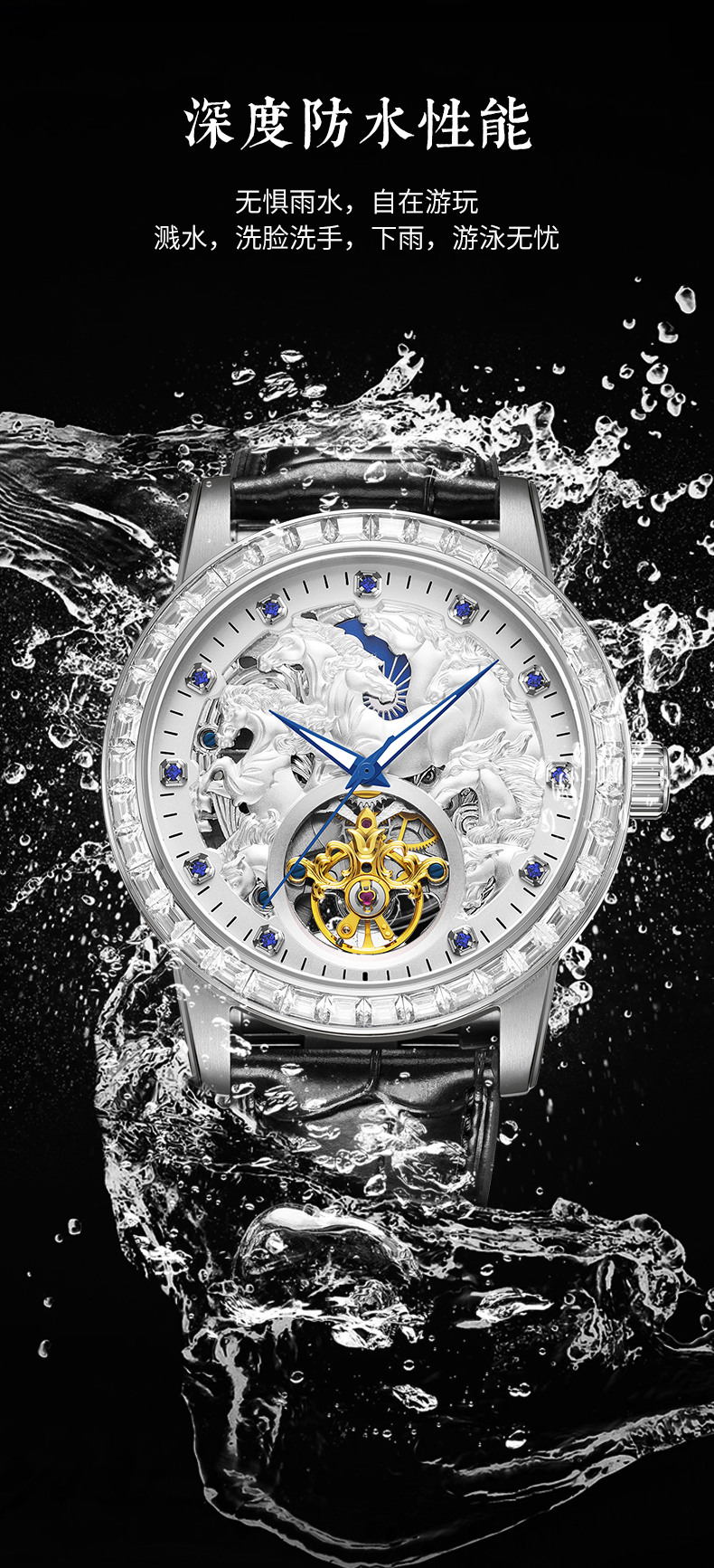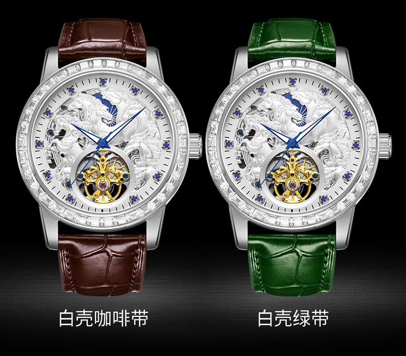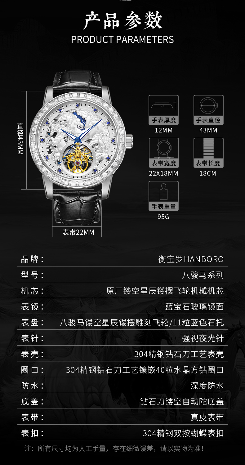 HANBORO men's skeleton eight steed automatic mechanical watch waterproof belt wristwatch 006-2
