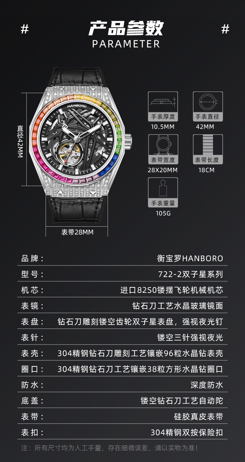 HANBORO Gemini Series Men's Automatic Mechanical Watch 722-2