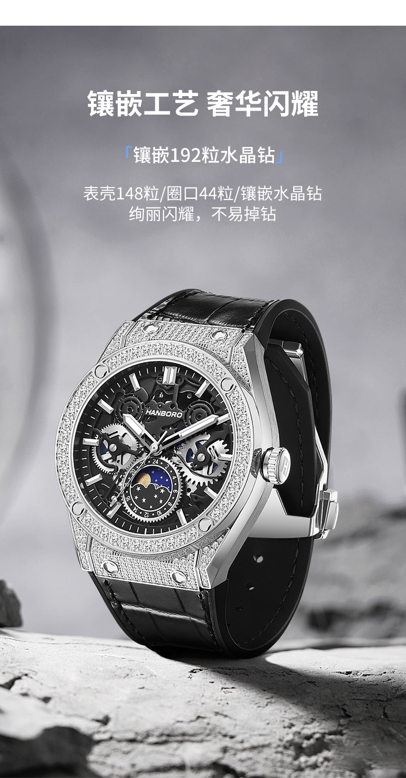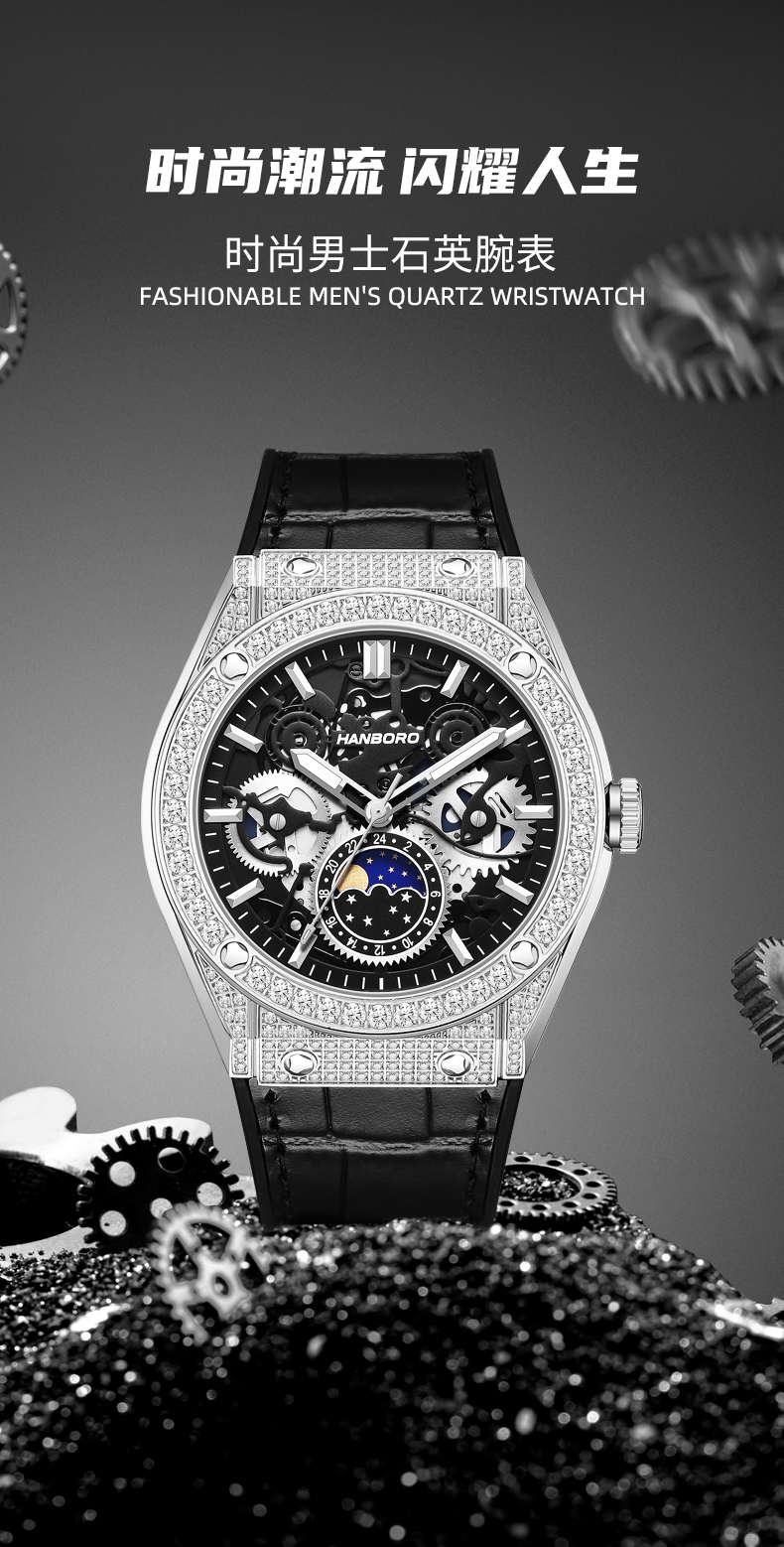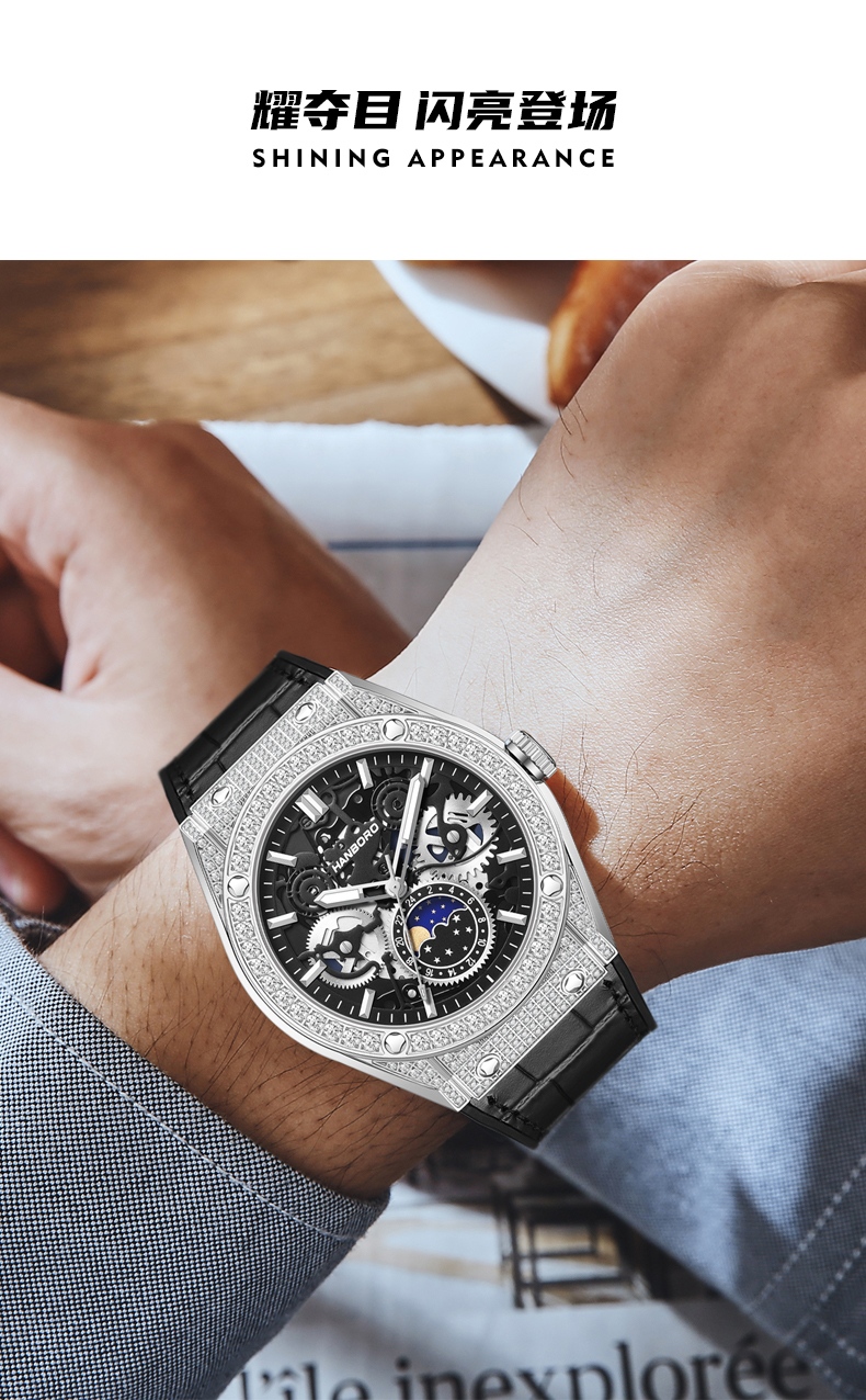 HANBORO Men's Full Diamond English Watch Fashion Trend Watch 723