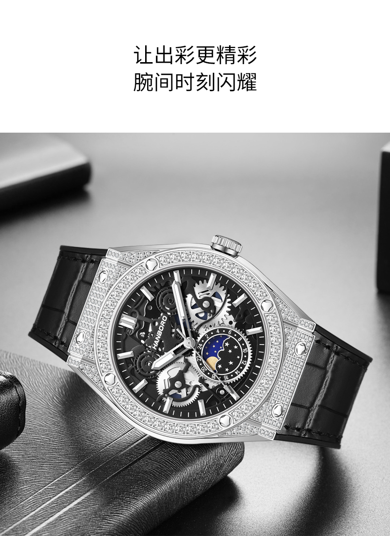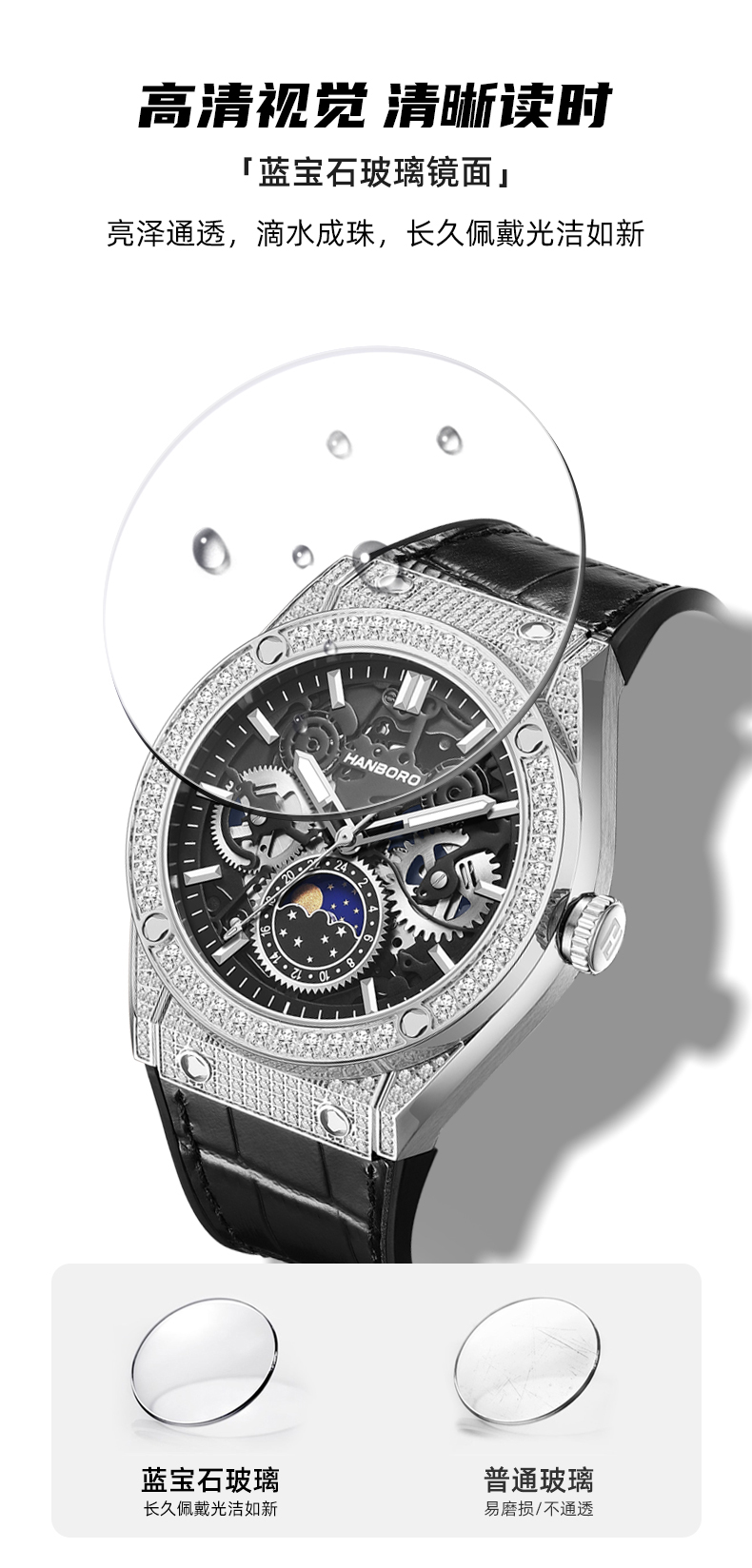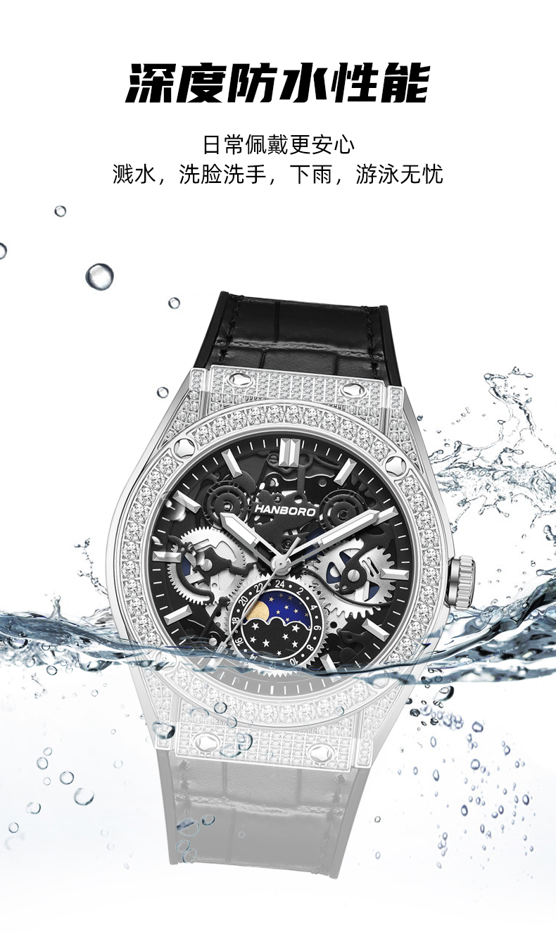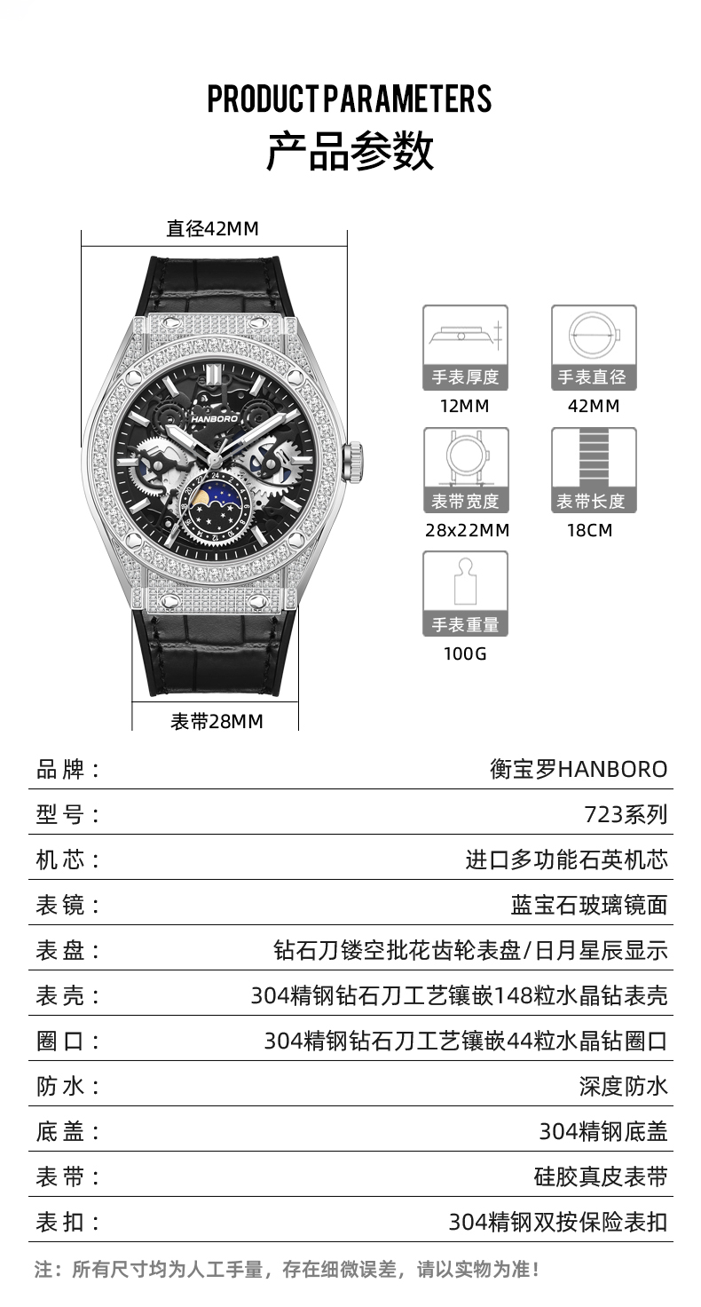 HANBORO Men's Full Diamond English Watch Fashion Trend Watch 723
