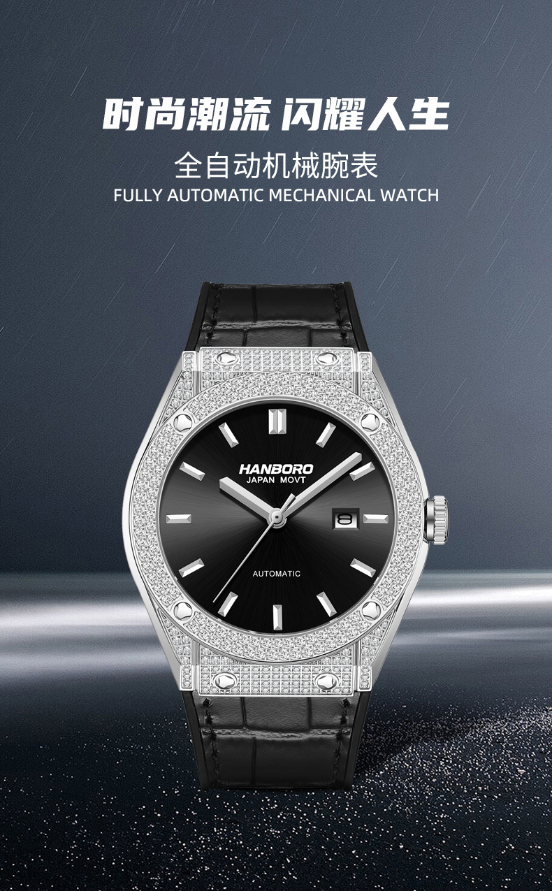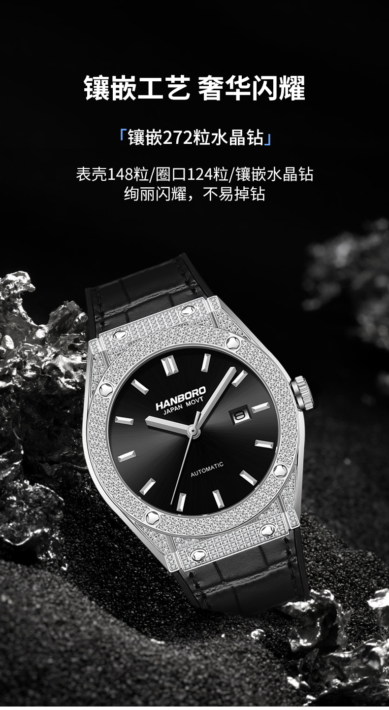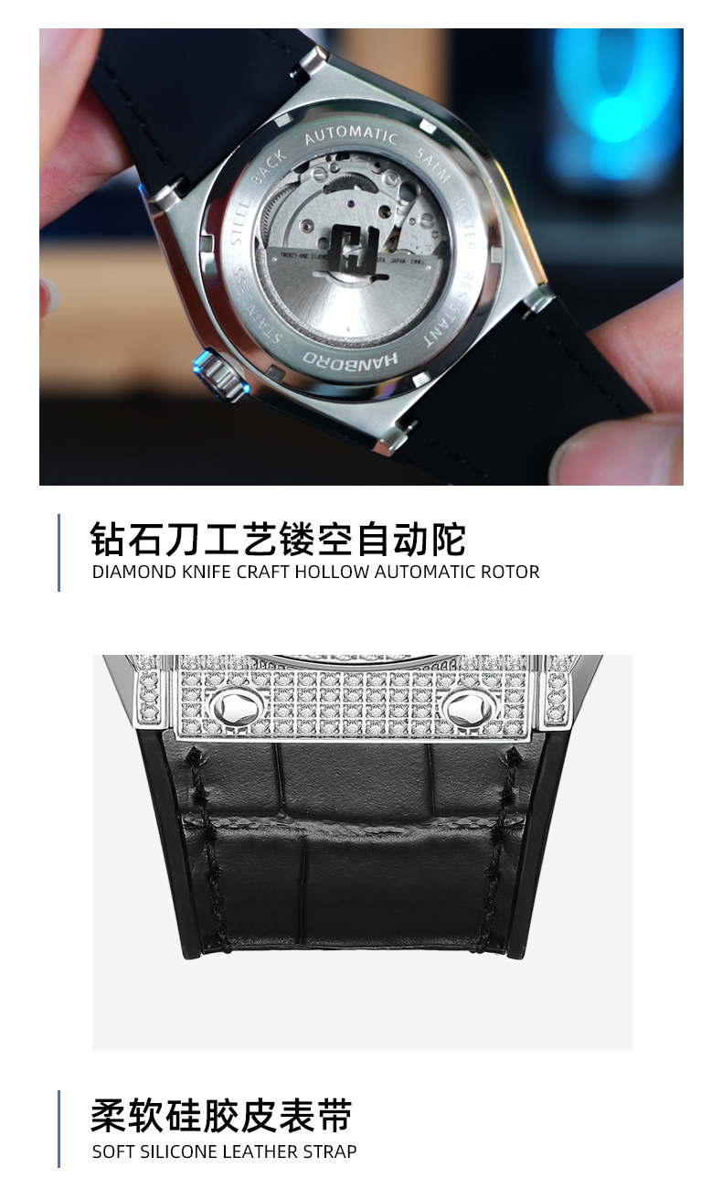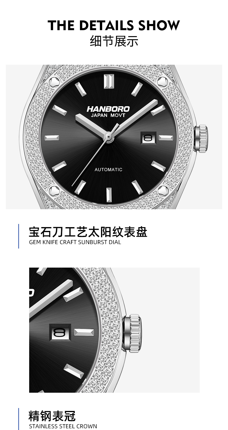 HANBORO Men's Diamonds Automatic Mechanical Watch 724