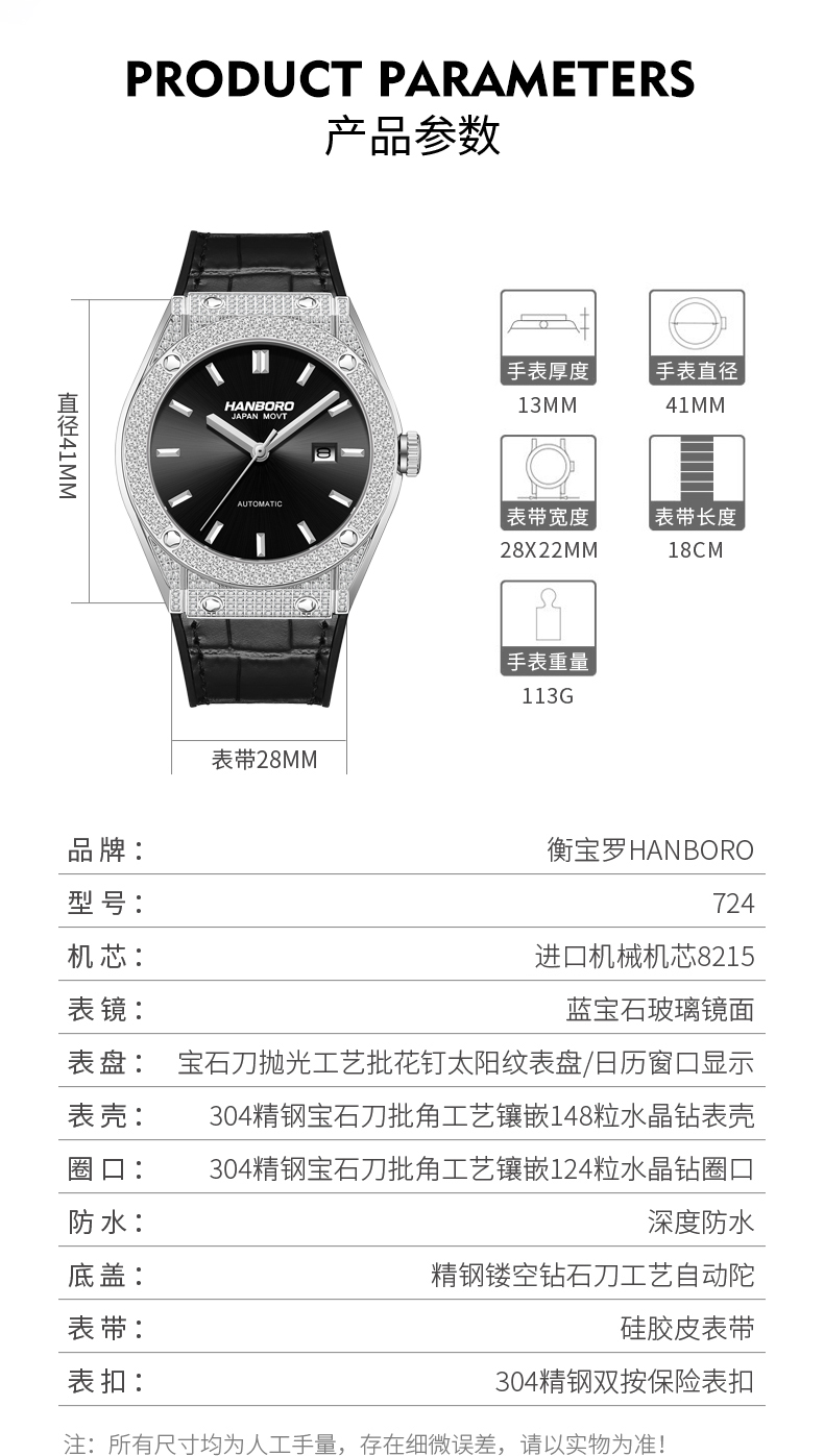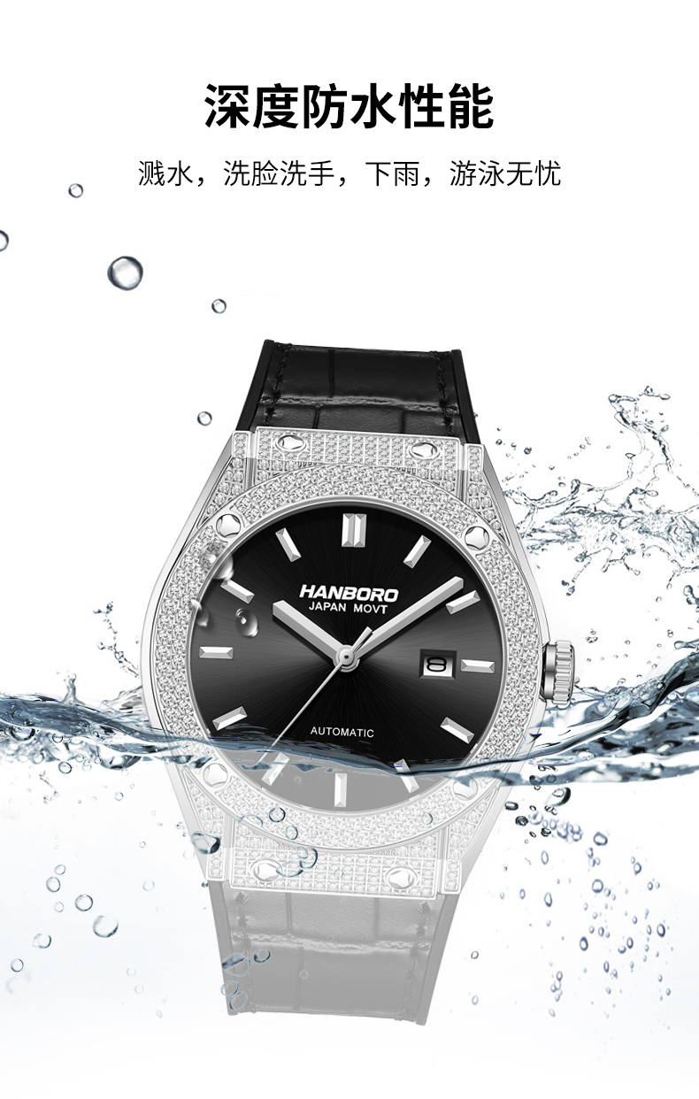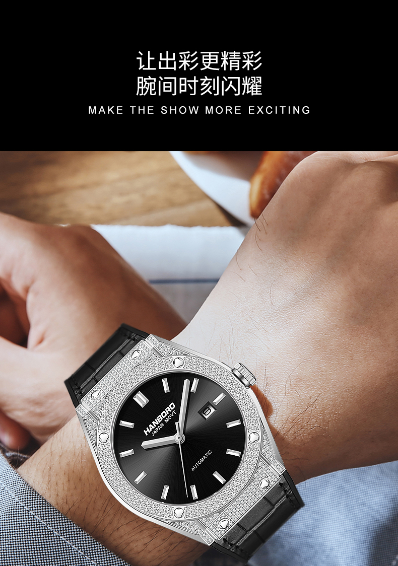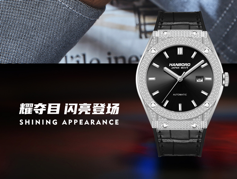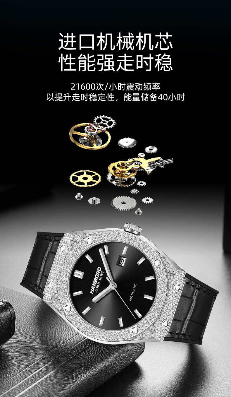 HANBORO Men's Diamonds Automatic Mechanical Watch 724