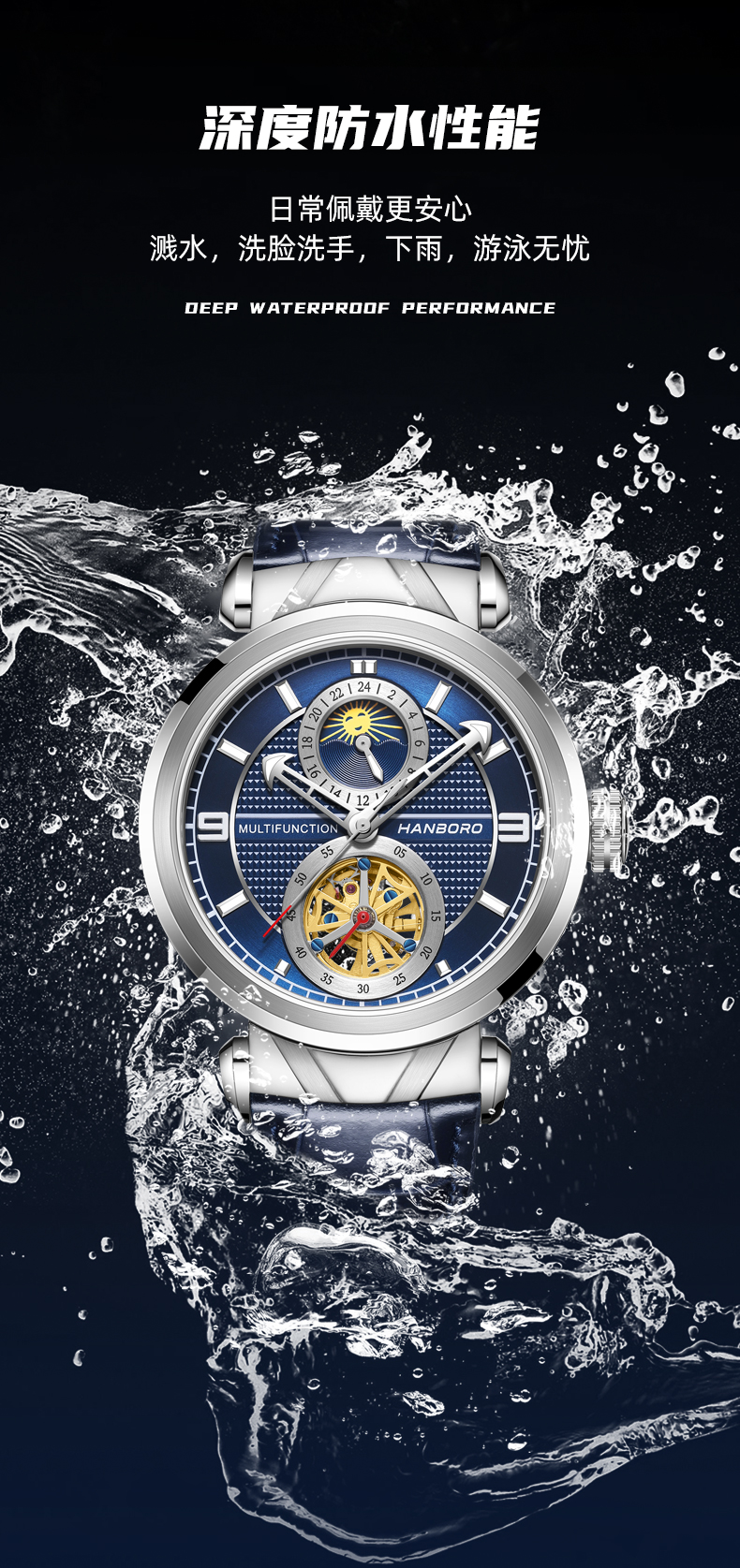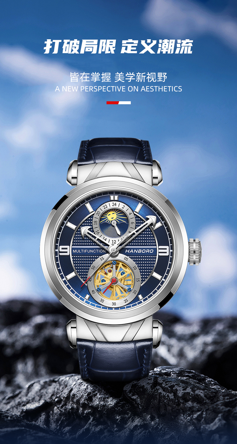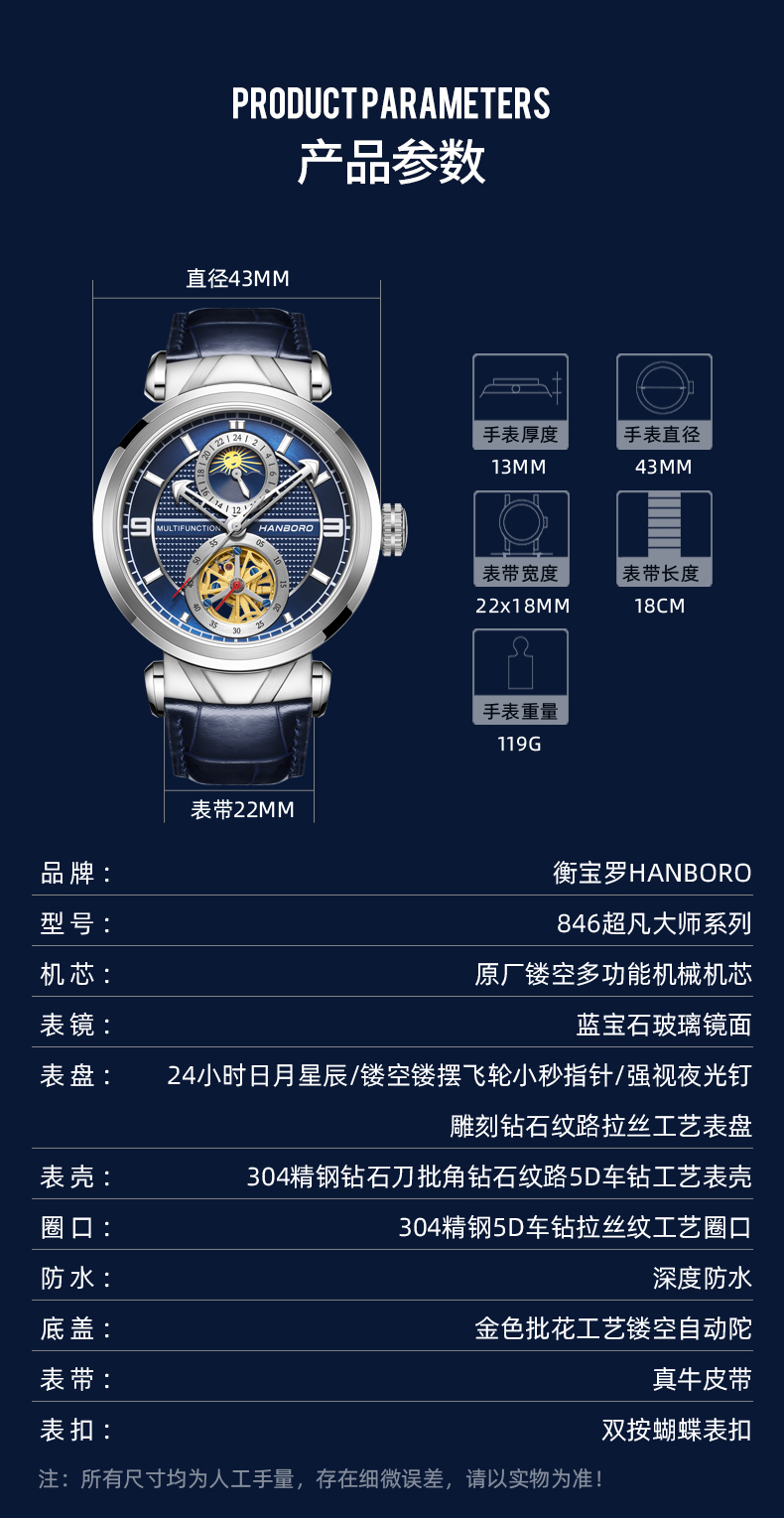 HANBORO Super Master Series Men's Automatic Mechanical Watch Skeleton Flywheel Watch 846