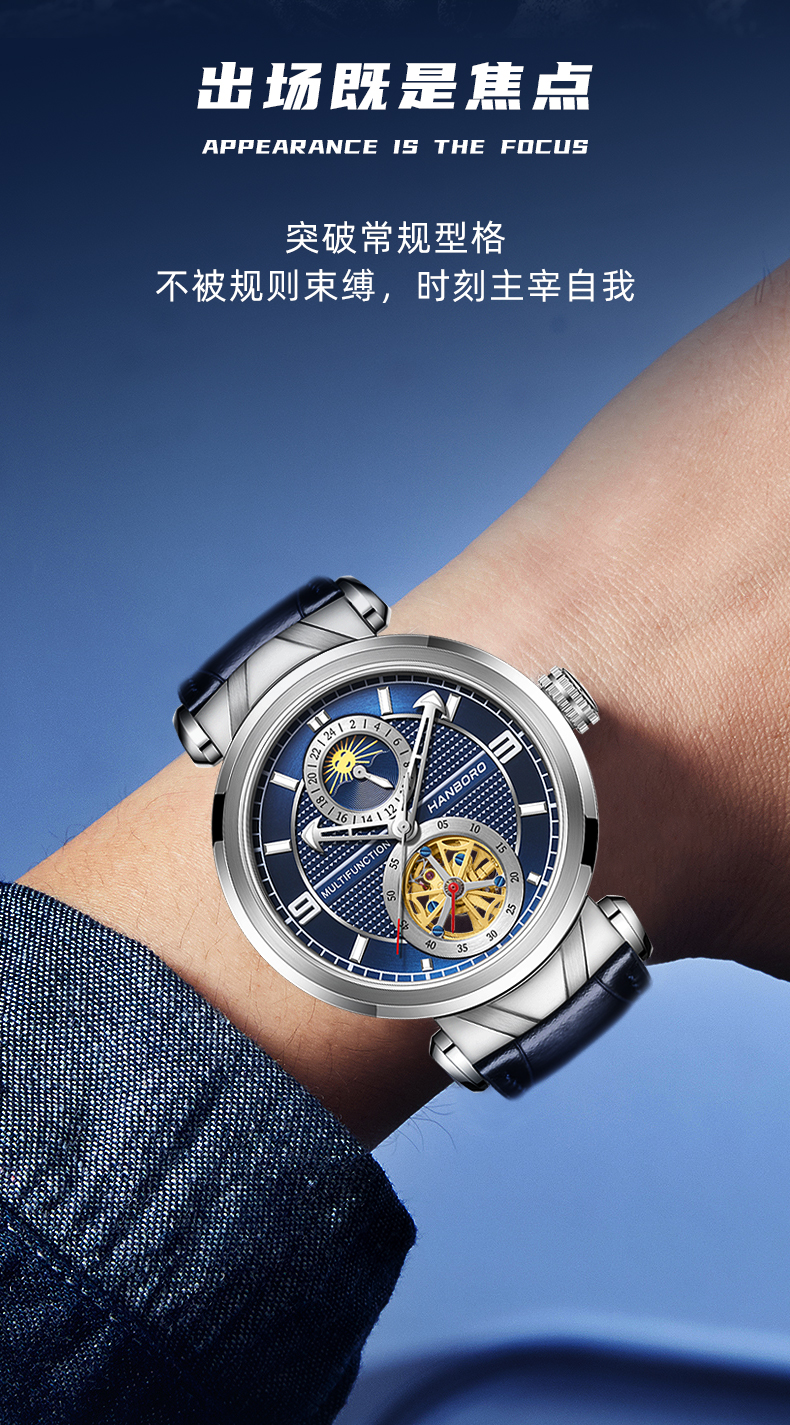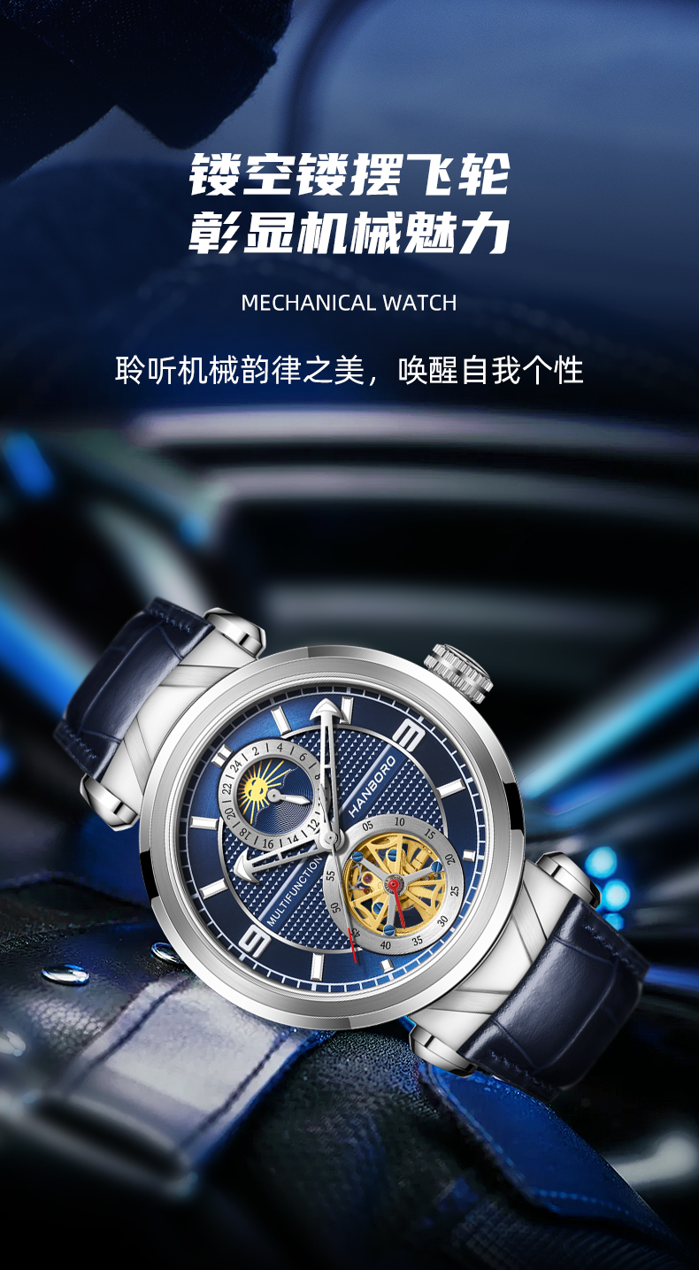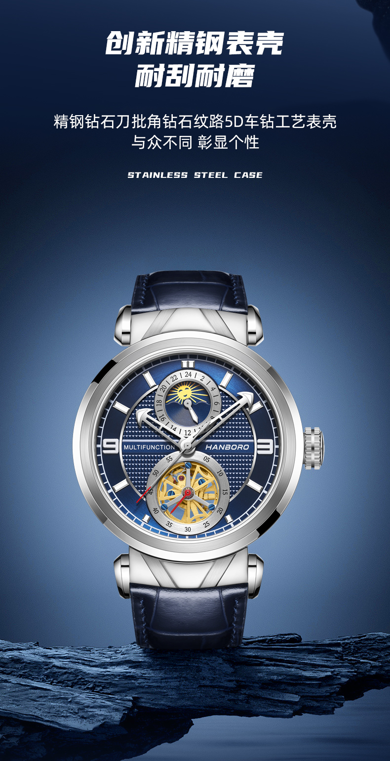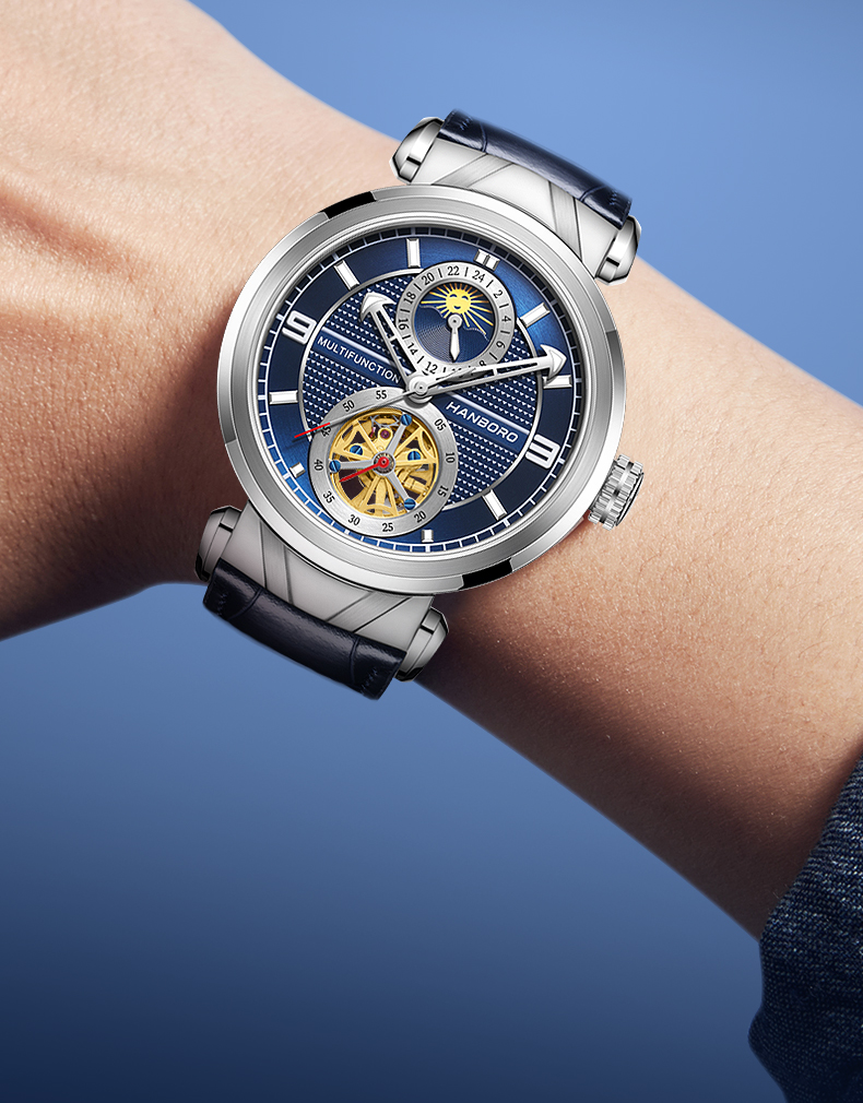 HANBORO Super Master Series Men's Automatic Mechanical Watch Skeleton Flywheel Watch 846