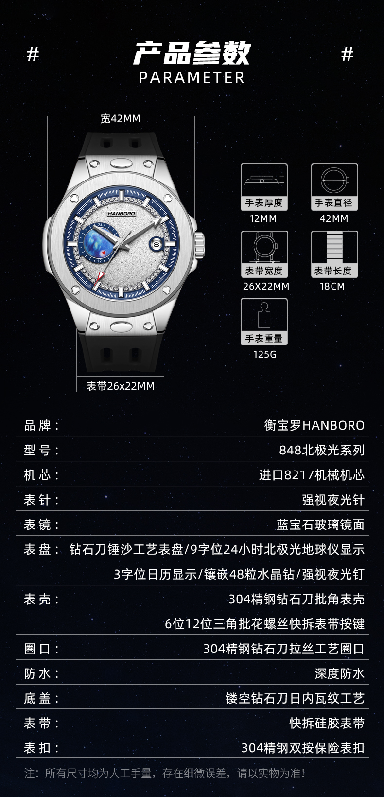 HANBORO Northern Lights Men's Automatic Mechanical Watch 848
