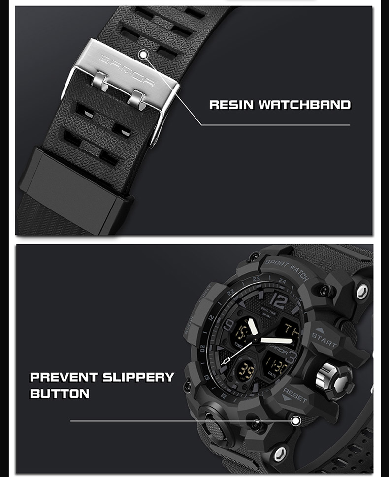 Turn on the luminous mode with one button, and see the cold light effect at night. The light is soft and not dazzling, and you can see the time clearly in the dark environment. Resin strap, light and comfortable, good wear resistance;