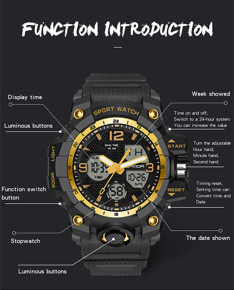 Time between the two places, countdown, alarm clock and the hour, stopwatch timing, week calendar, 12/24-hour system, and a variety of practical functions can be easily set;