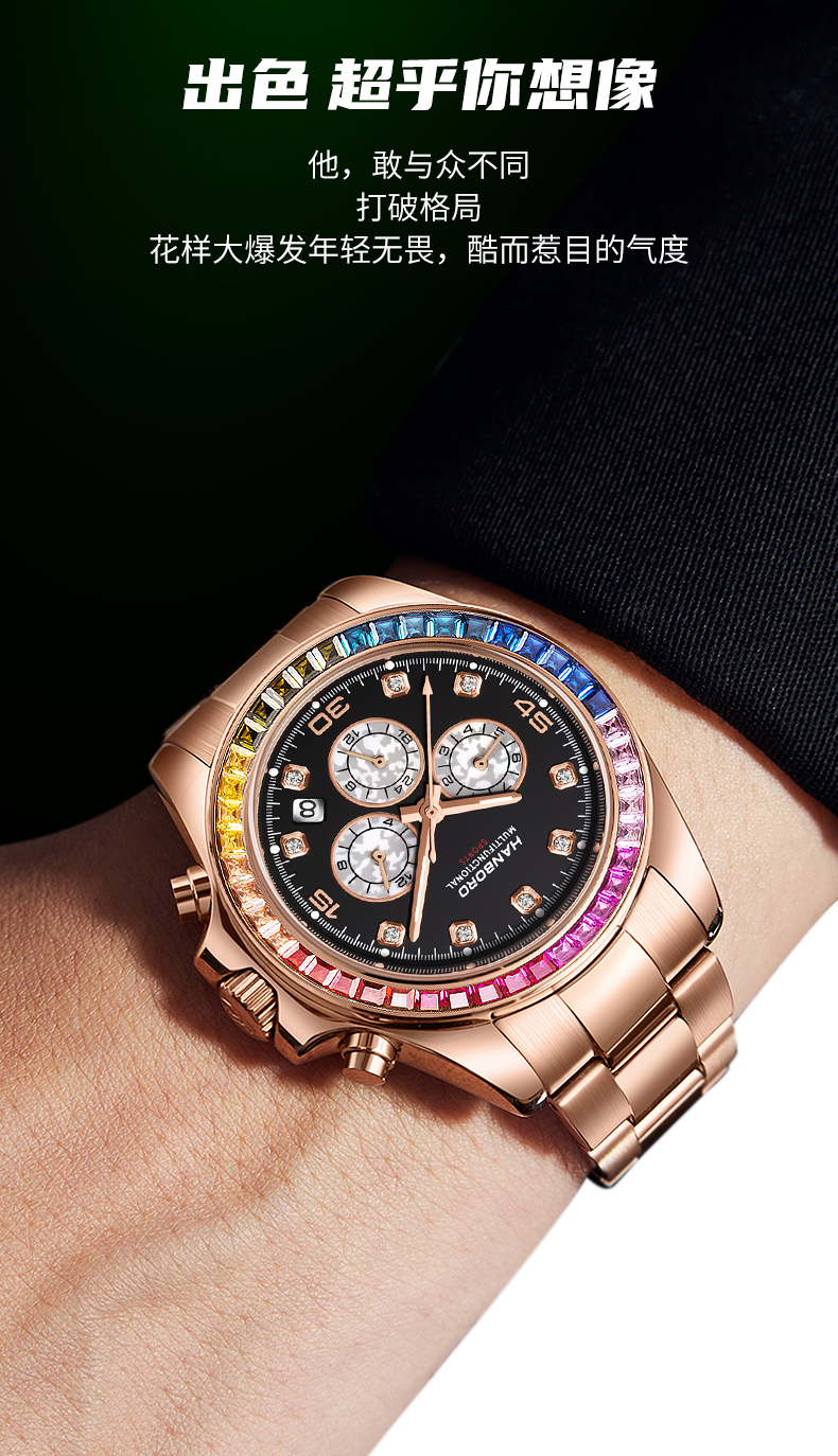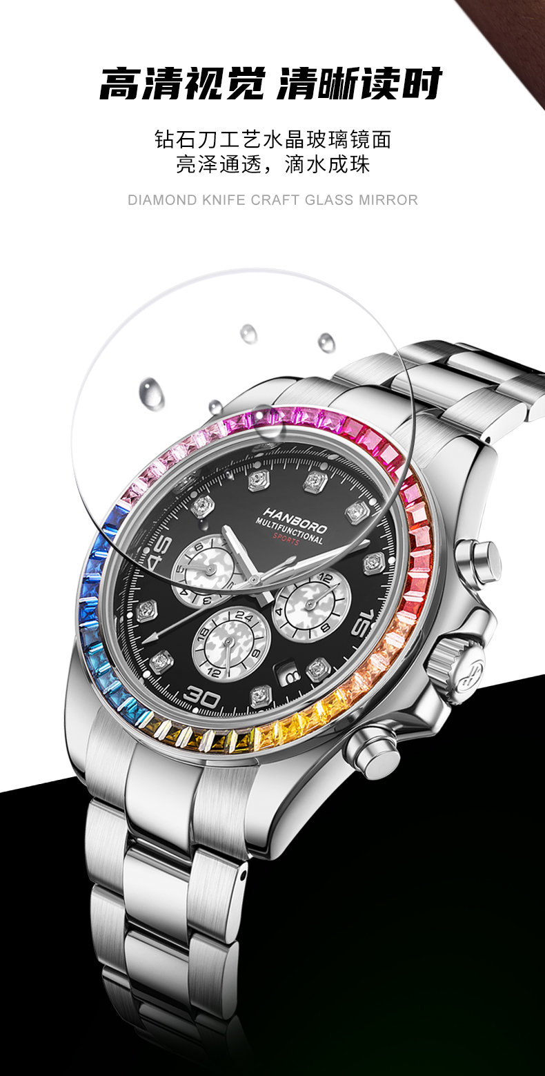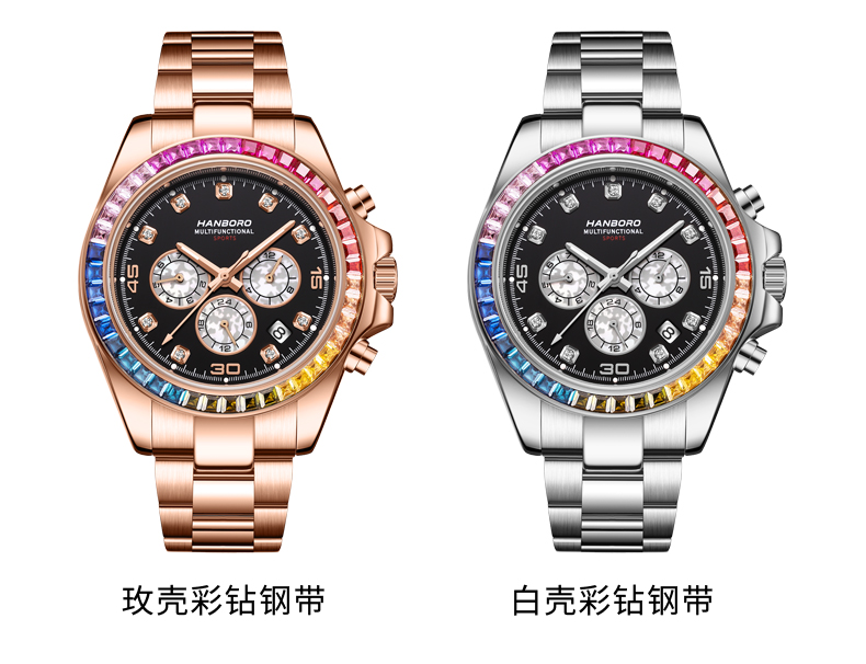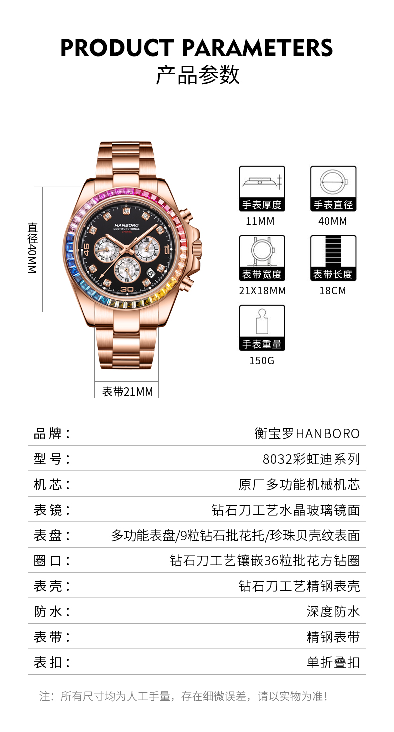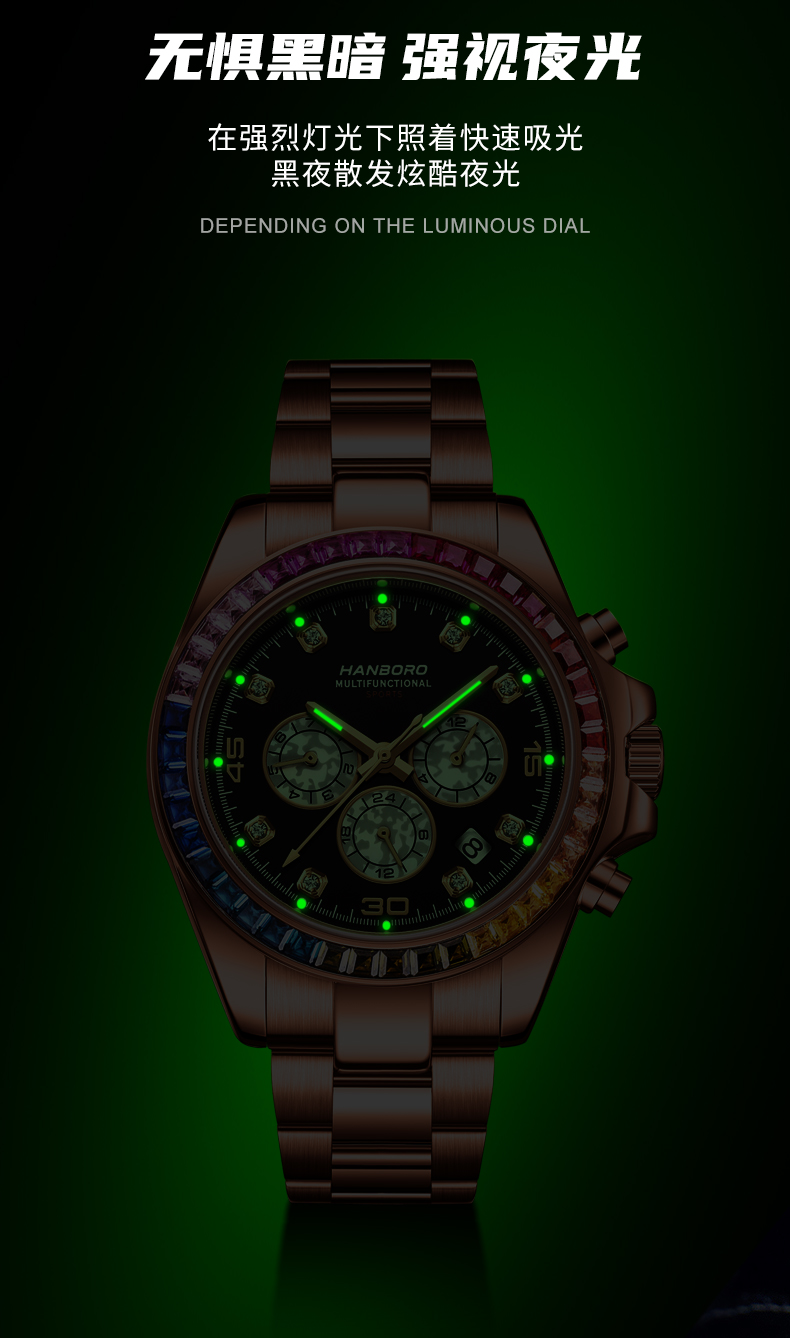 HANBORO Rainbow Dee Multifunction Automatic Mechanical Watch Men's Waterproof Steel Strap Wristwatch 8032L