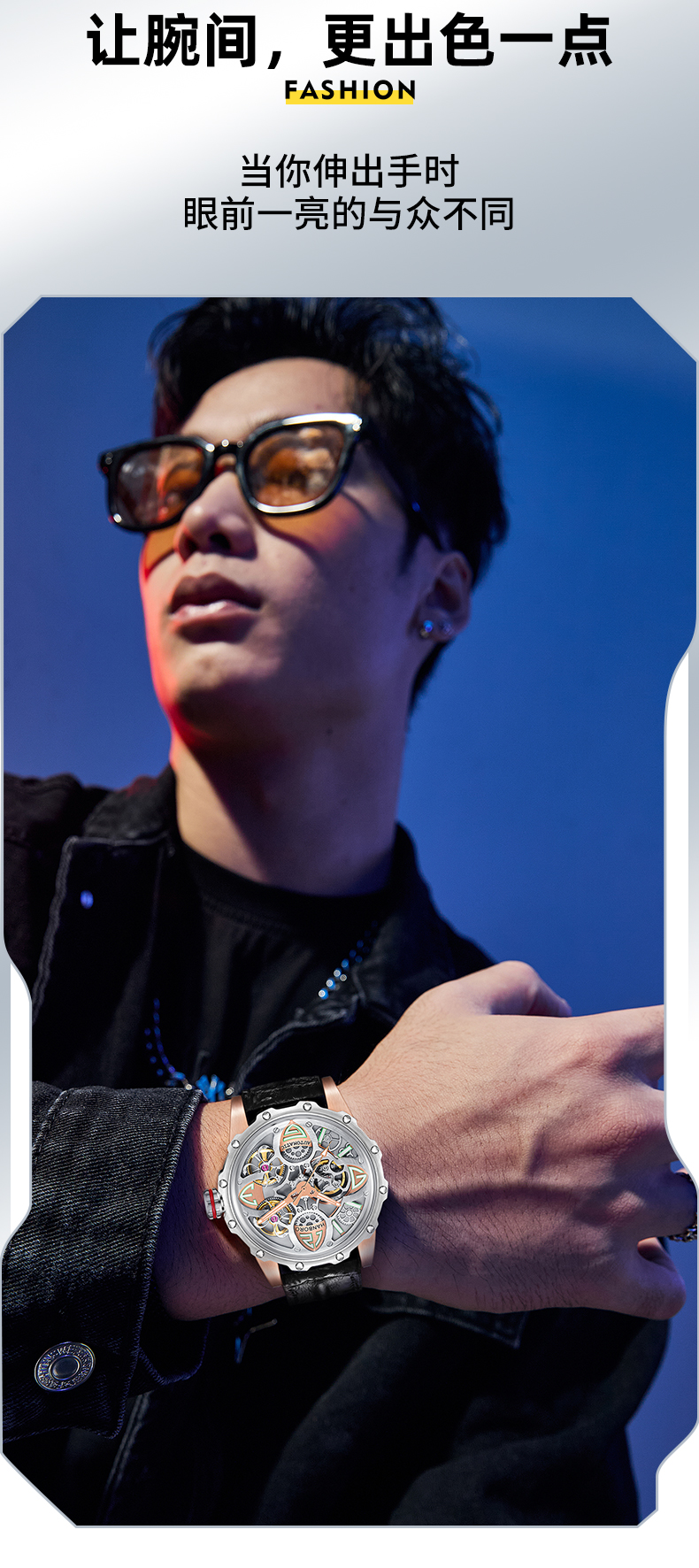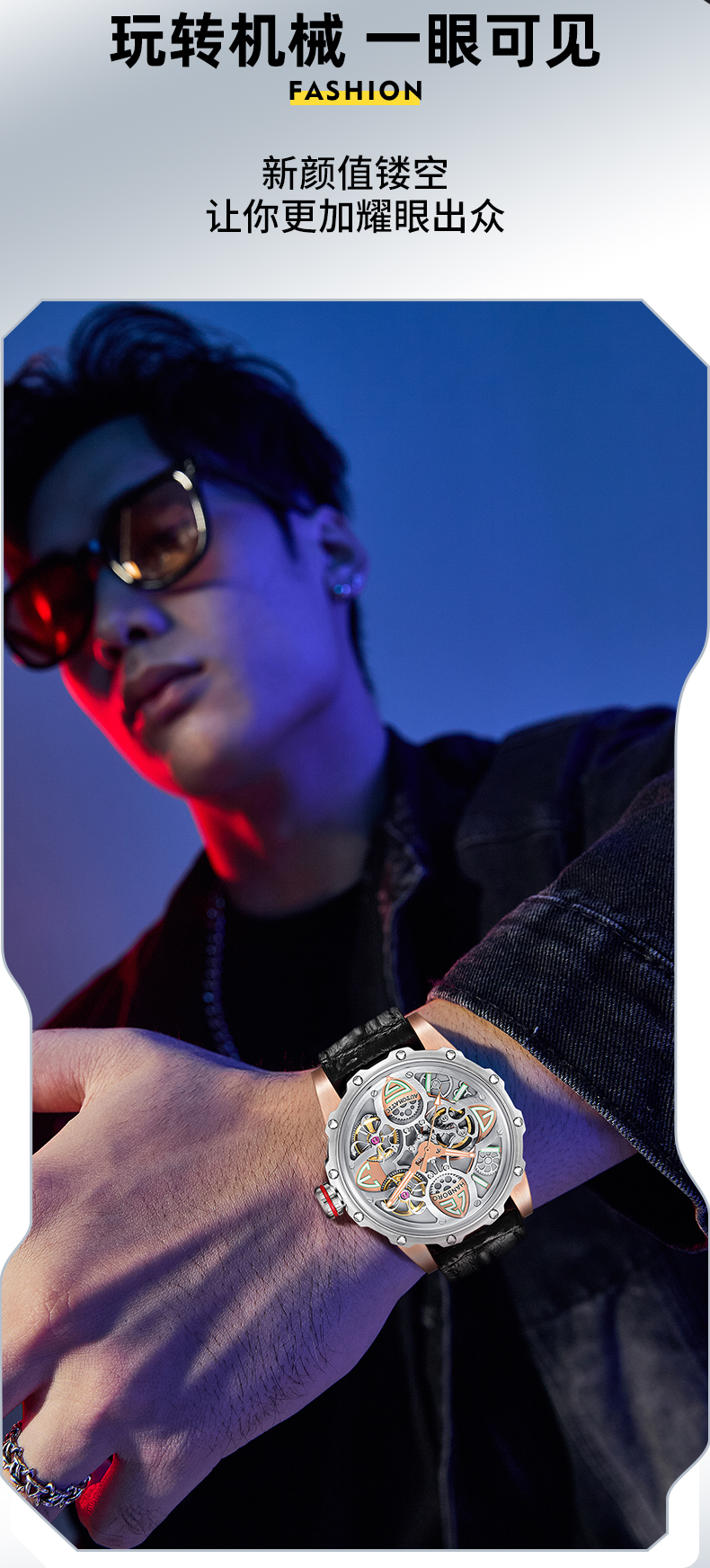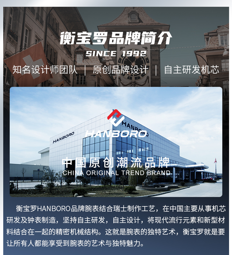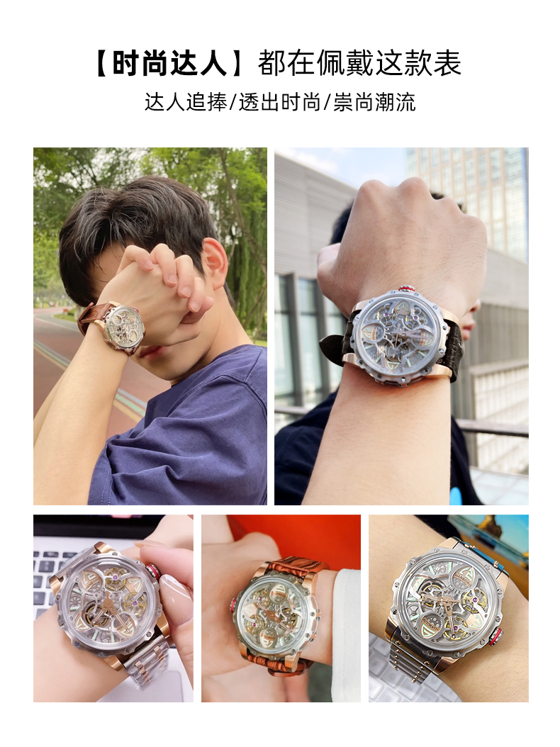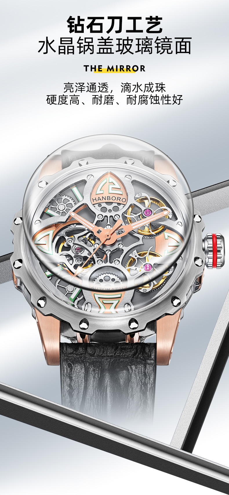 HANBORO Clover King Series Men's Automatic Skeleton Mechanical Watch Wristwatch Fashion Large Dial Watch 8851