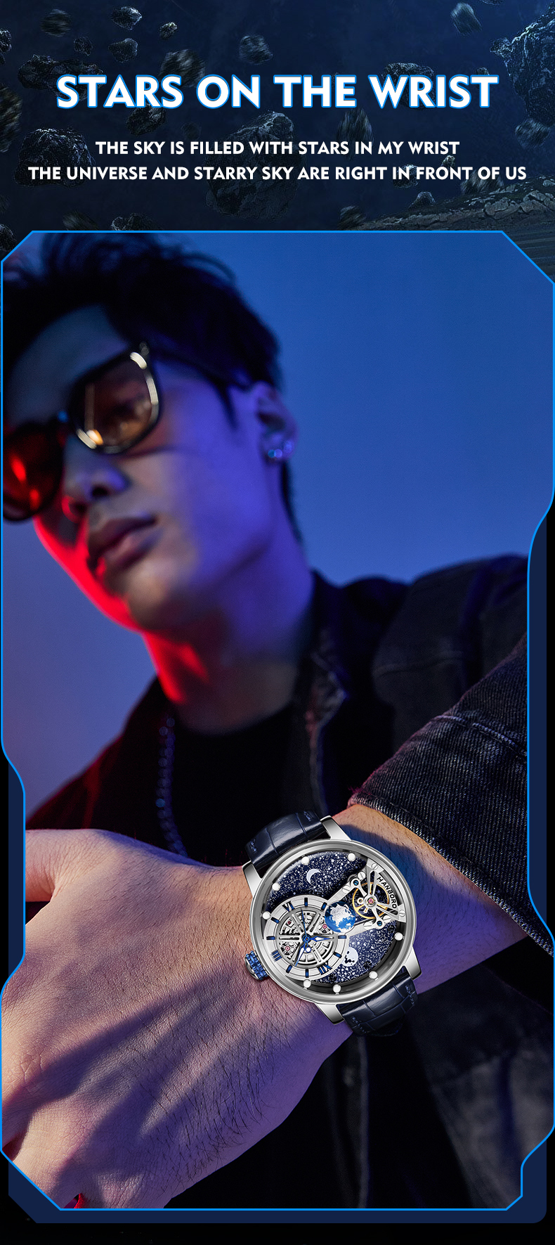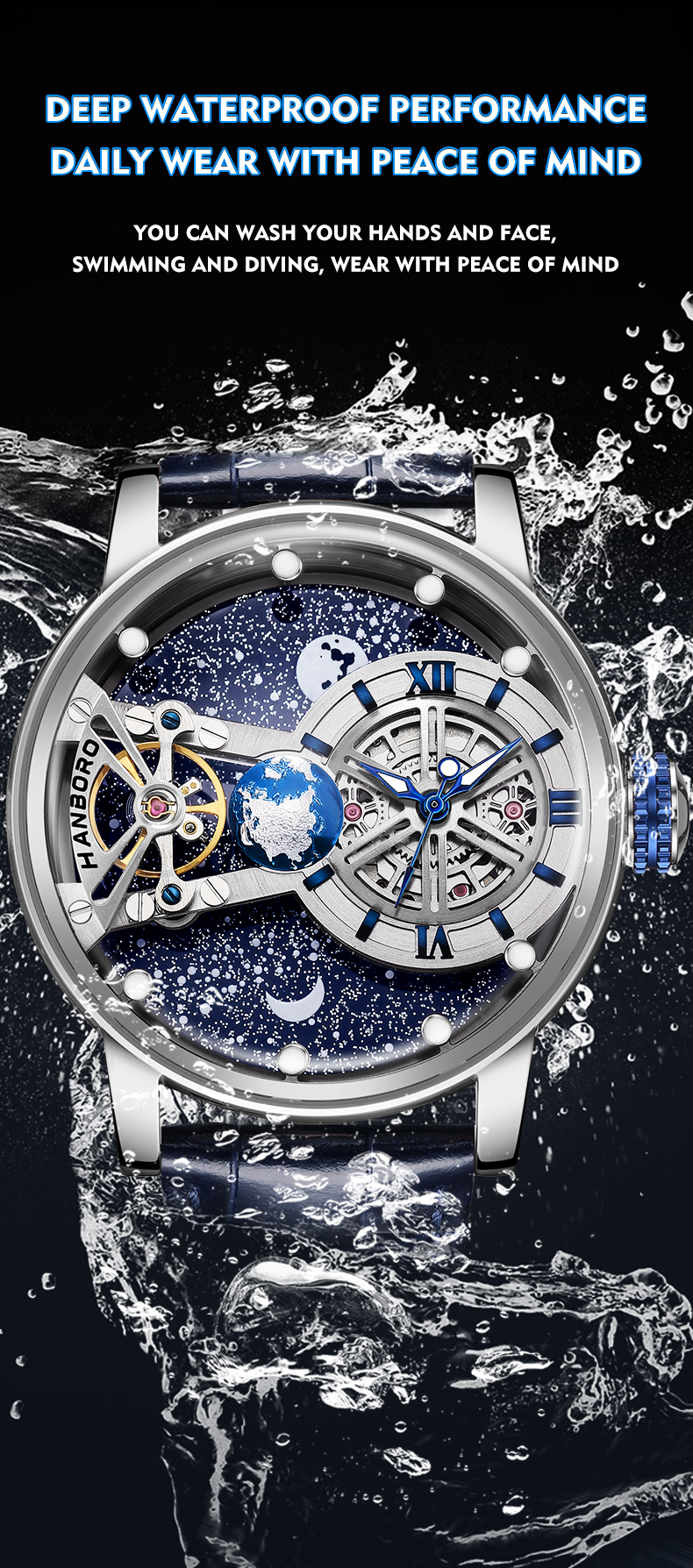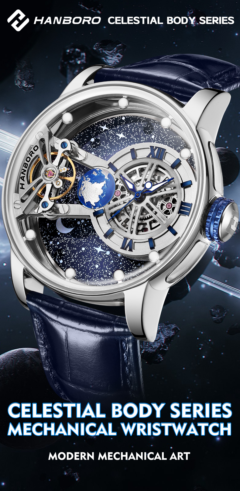HANBORO Men's Automatic Mechanical Watch Celestial Star Time Luminous Trend Watch 1009