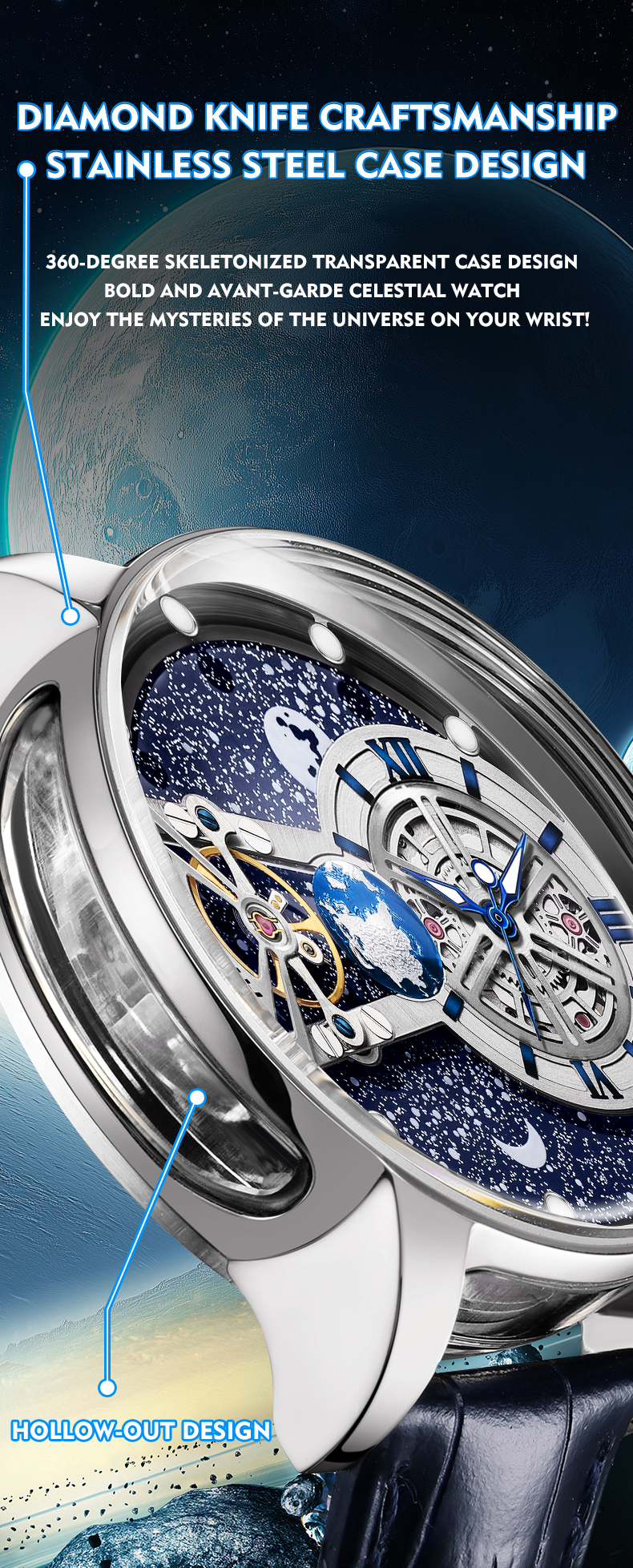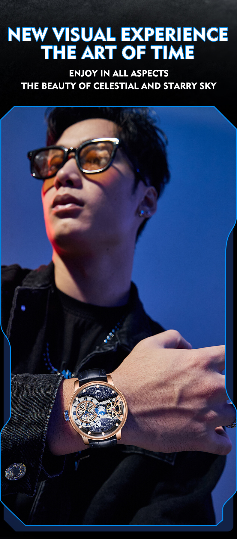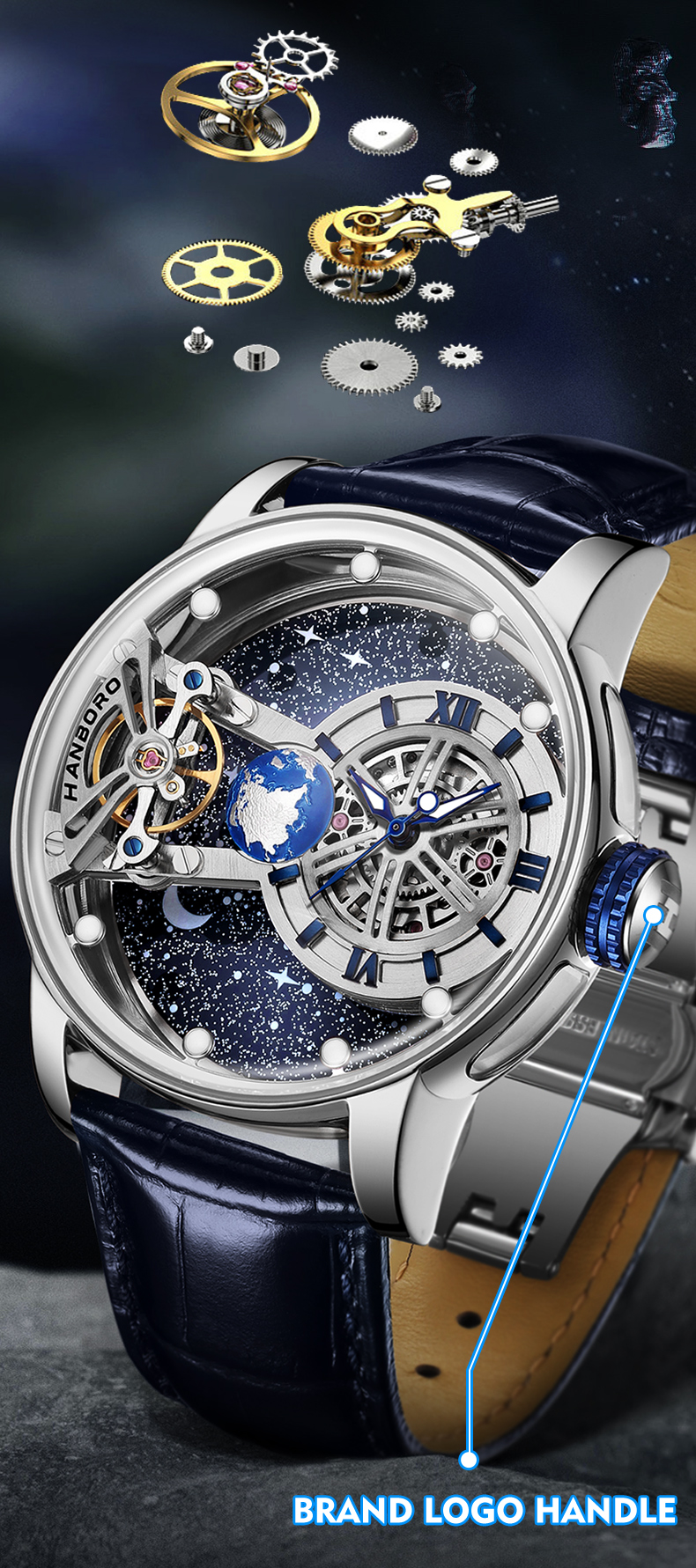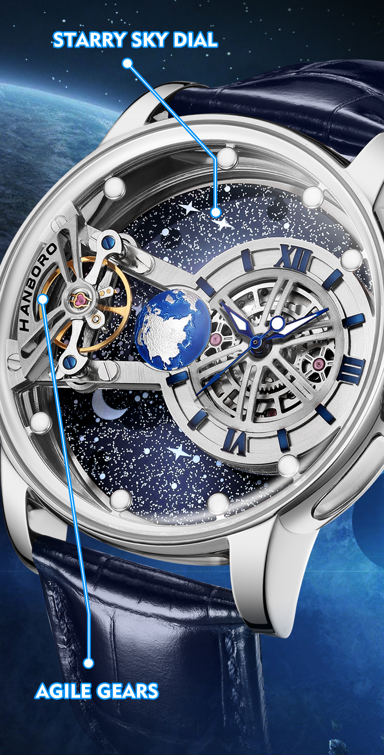 HANBORO Men's Automatic Mechanical Watch Celestial Star Time Luminous Trend Watch 1009