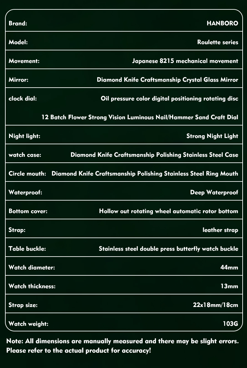 HANBORO Big Winner Series Men's Automatic Mechanical Watch Roulette Wheel Gambling Wheel Men's Watch 1015