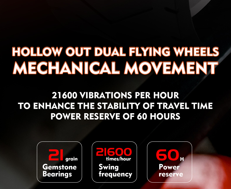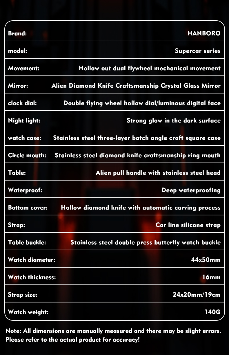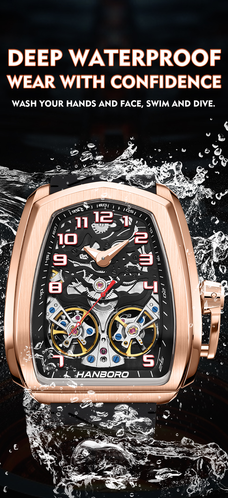 HANBOROSSR Supercar Series Double Tourbillon Hollow Fully Automatic Square Mechanical Watch Waterproof Luminous Silicon Tape Men's Watch 985