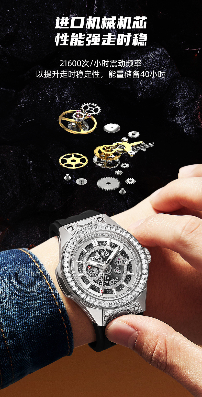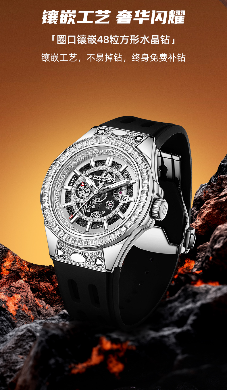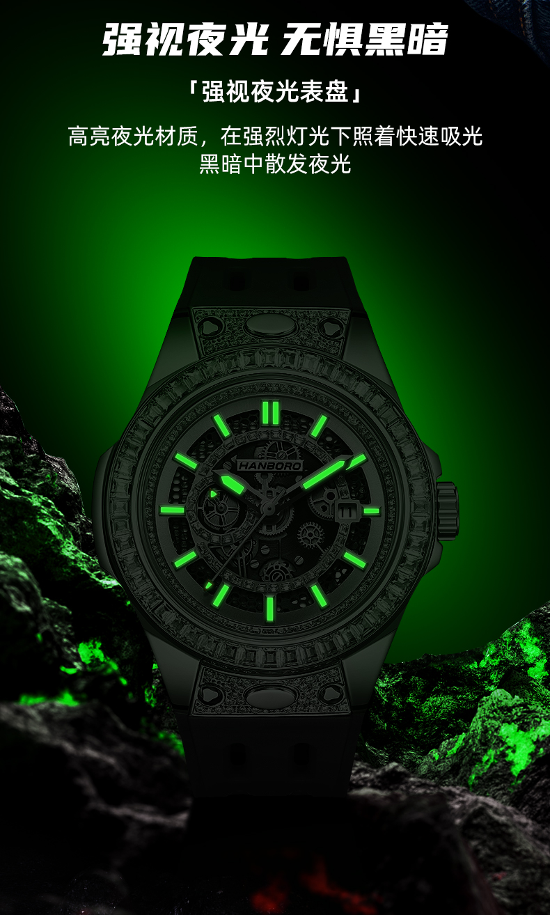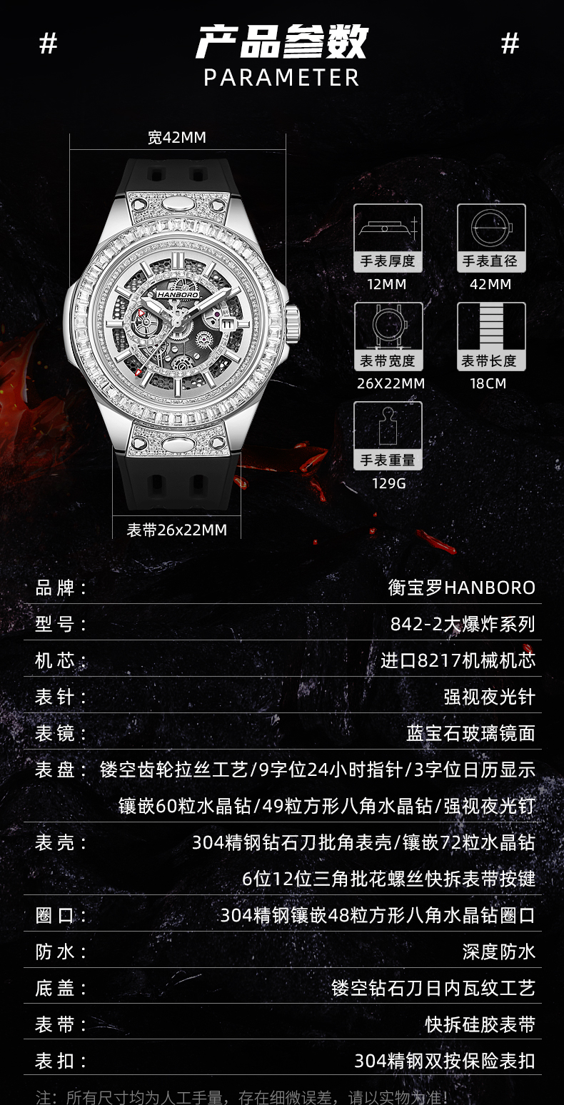 HANBORO men's fully automatic mechanical watch with diamond inlay, fashionable night light waterproof watch 842-2