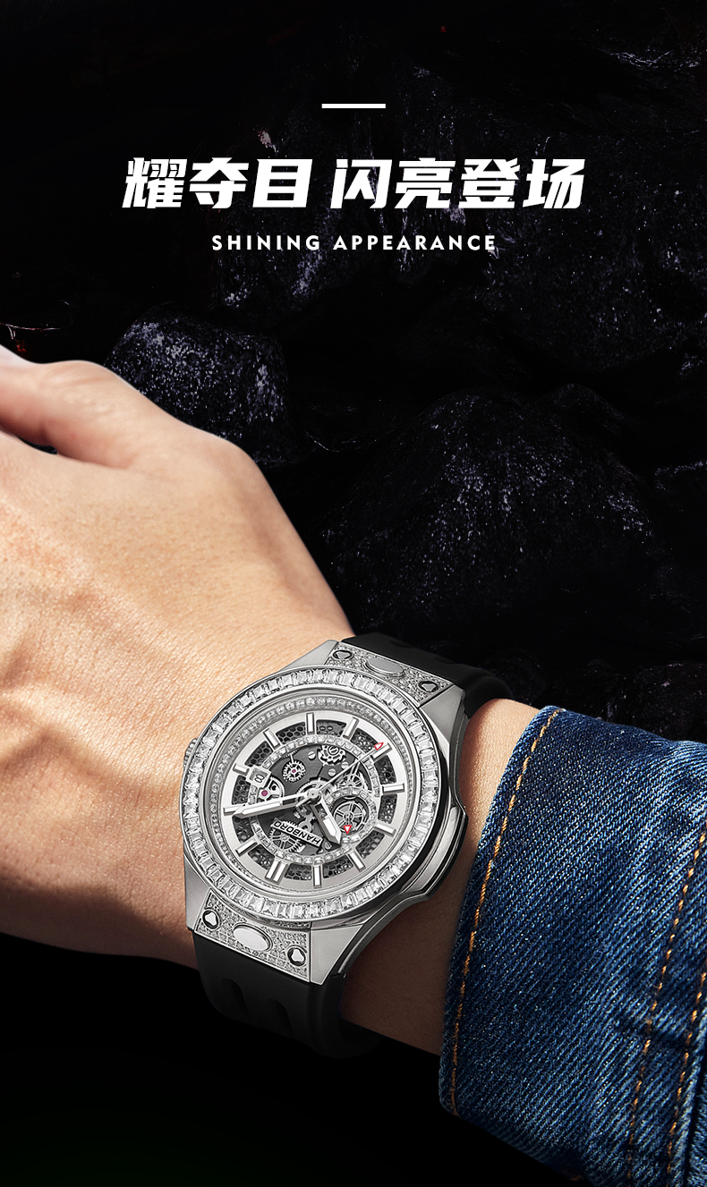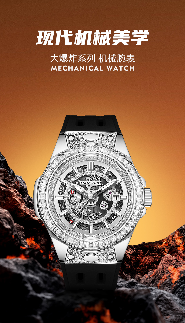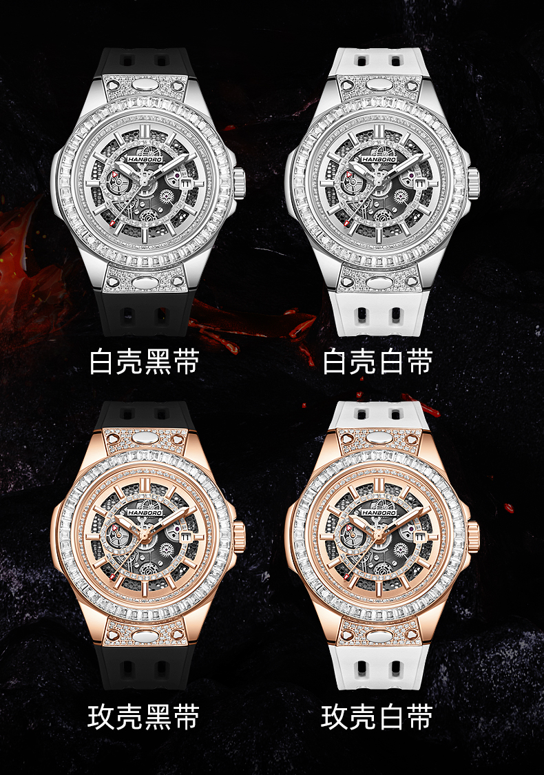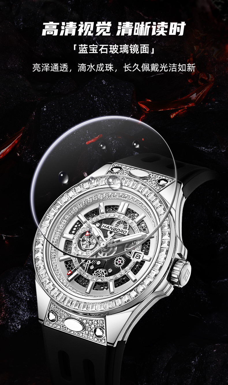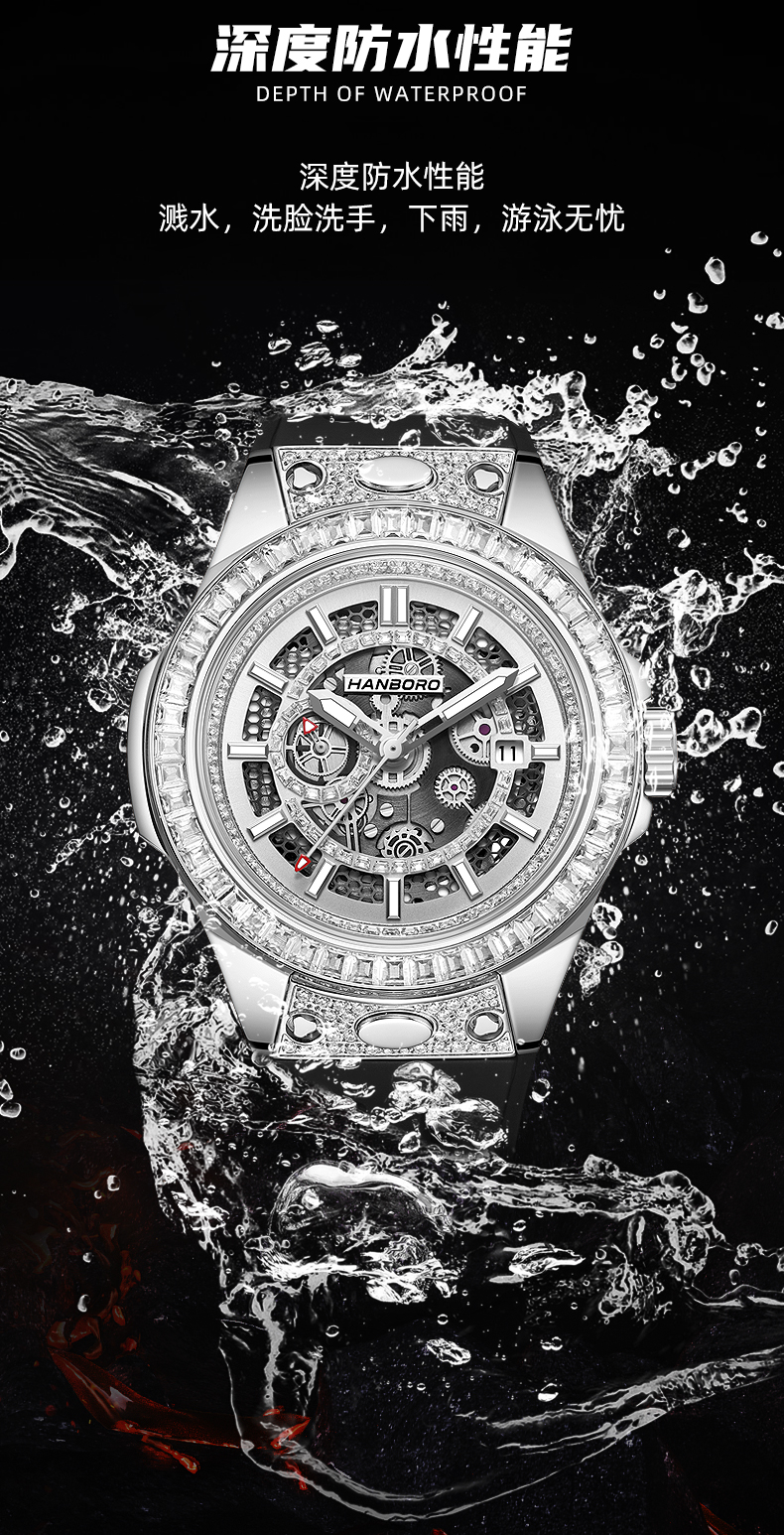 HANBORO men's fully automatic mechanical watch with diamond inlay, fashionable night light waterproof watch 842-2