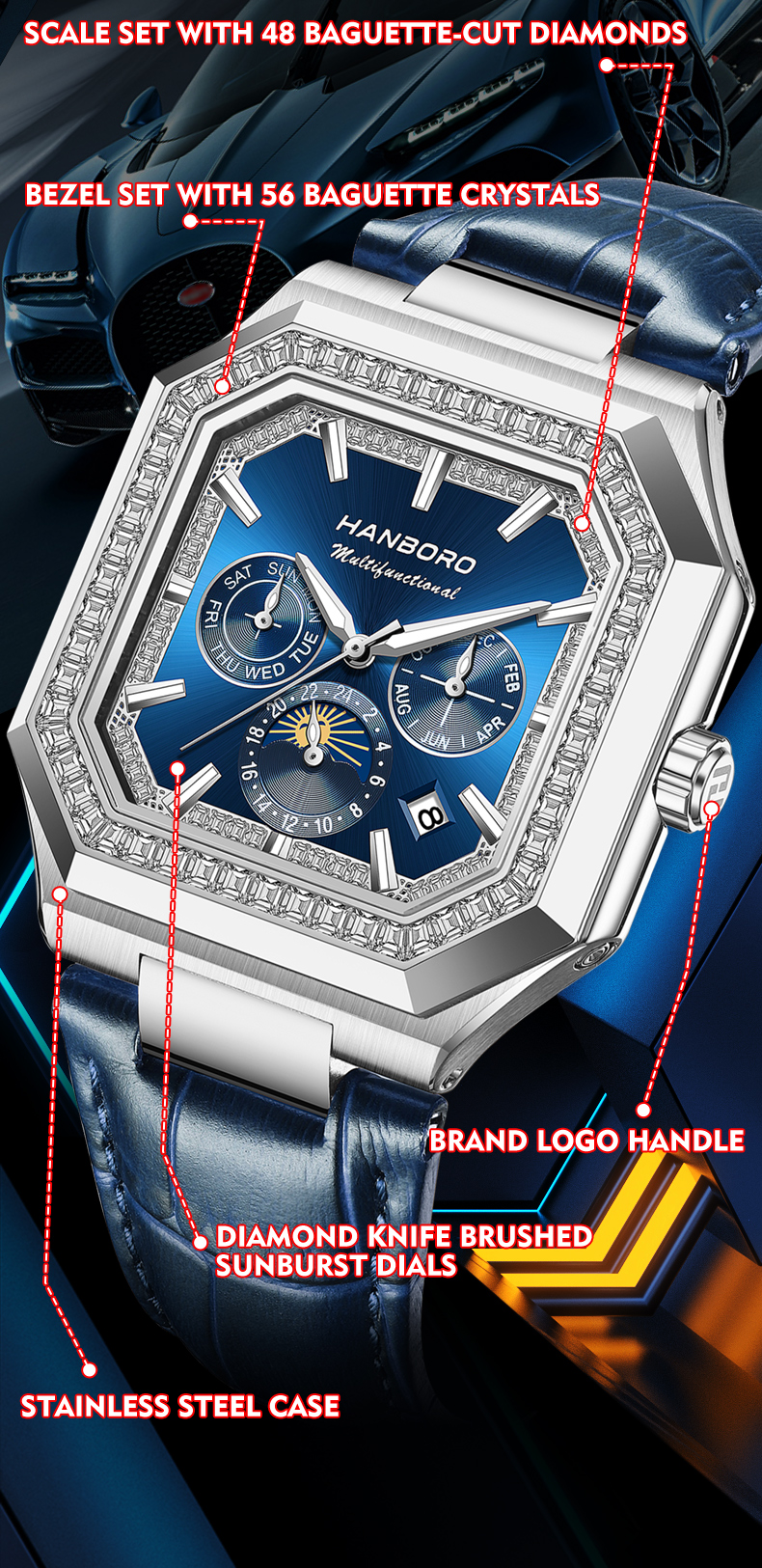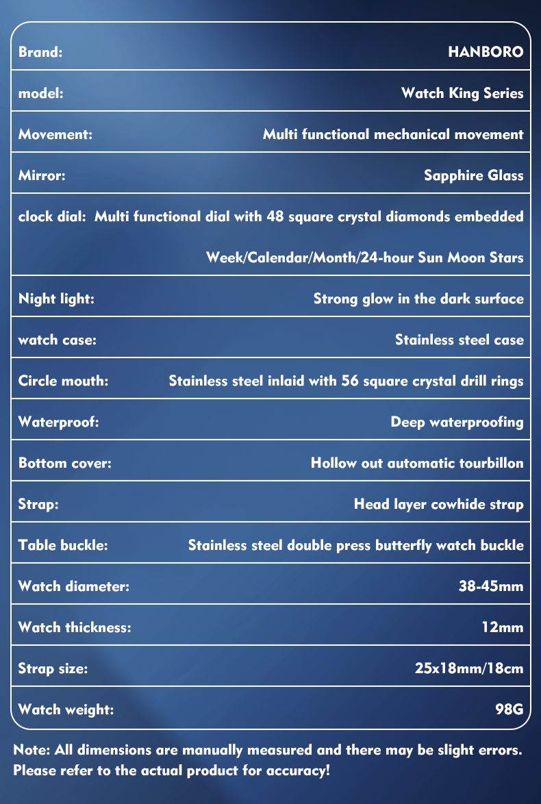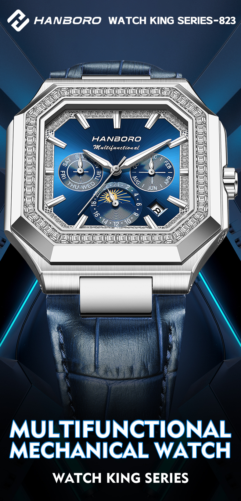 HANBORO King Collection Men's Automatic Mechanical Watch Multifunctional Fashion Trend Watch 823