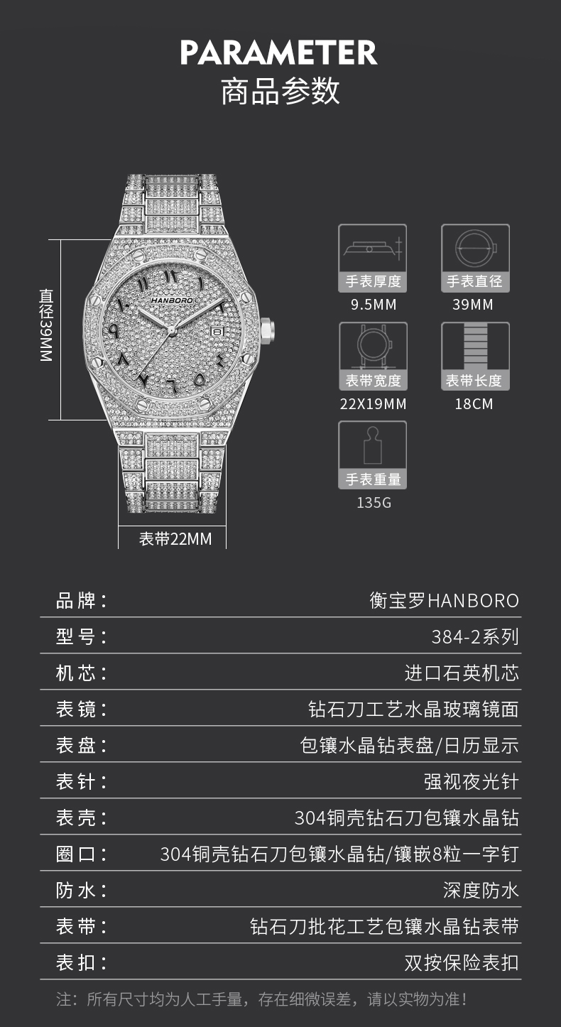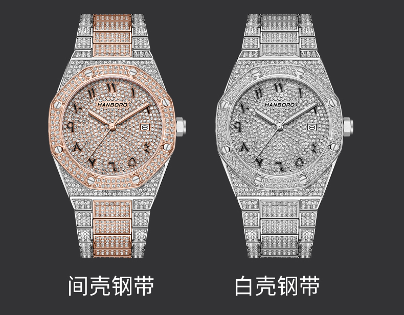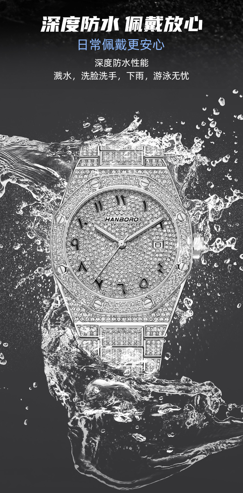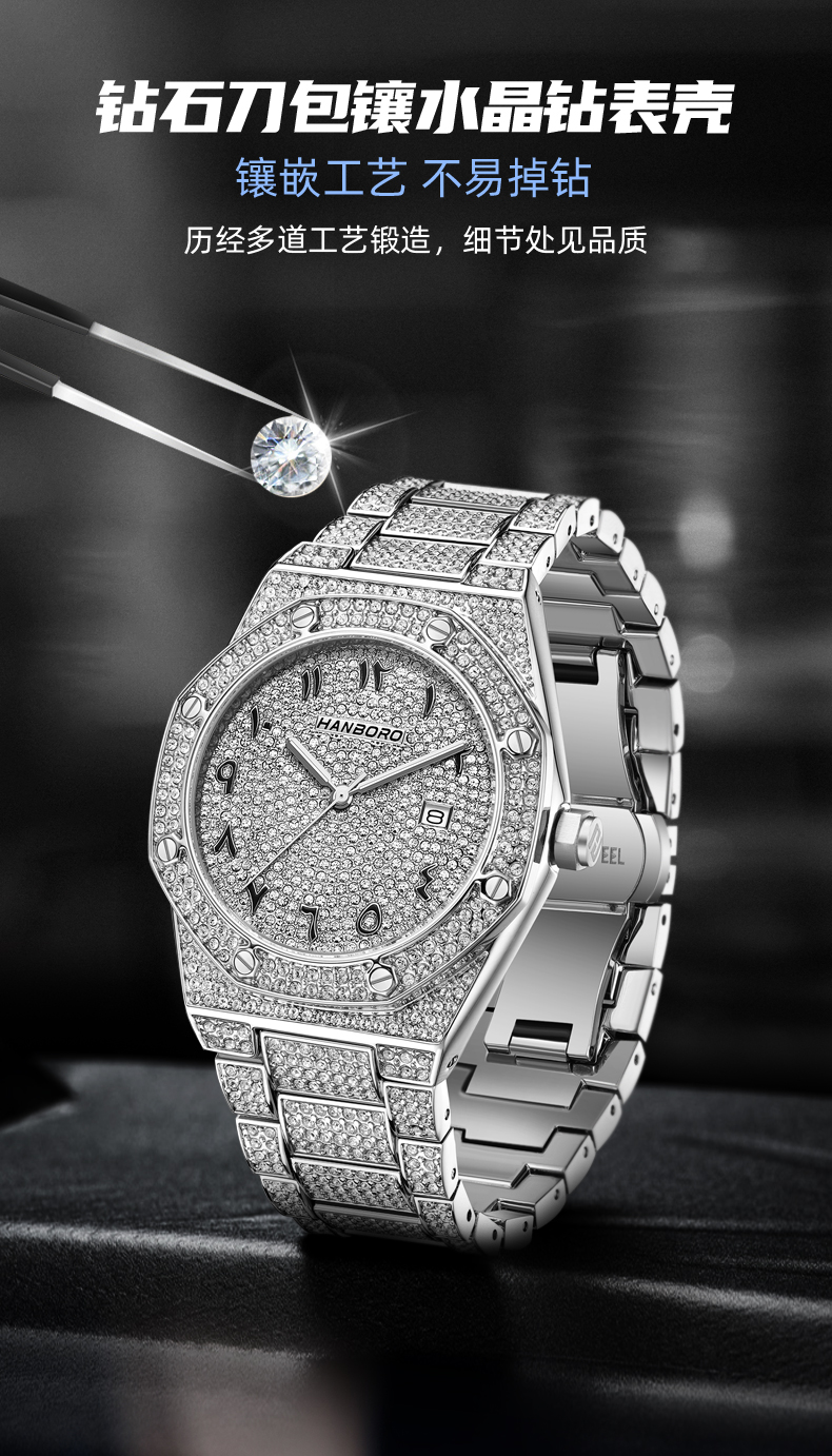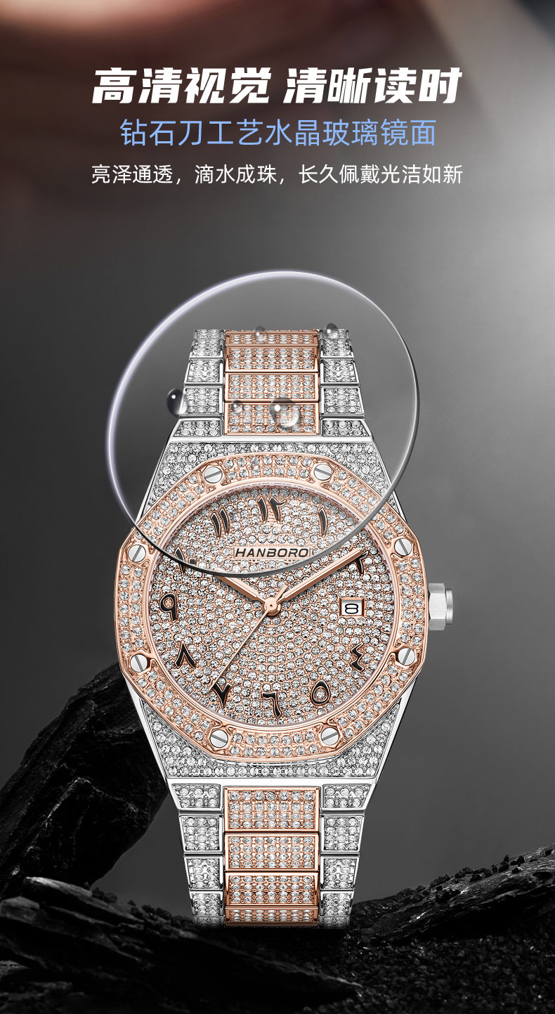 HANBORO Men's Full Star Crystal Diamond Quartz Watch Fashion Trend Watch 384-2