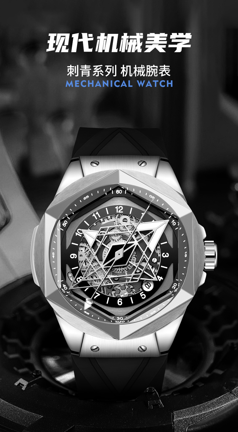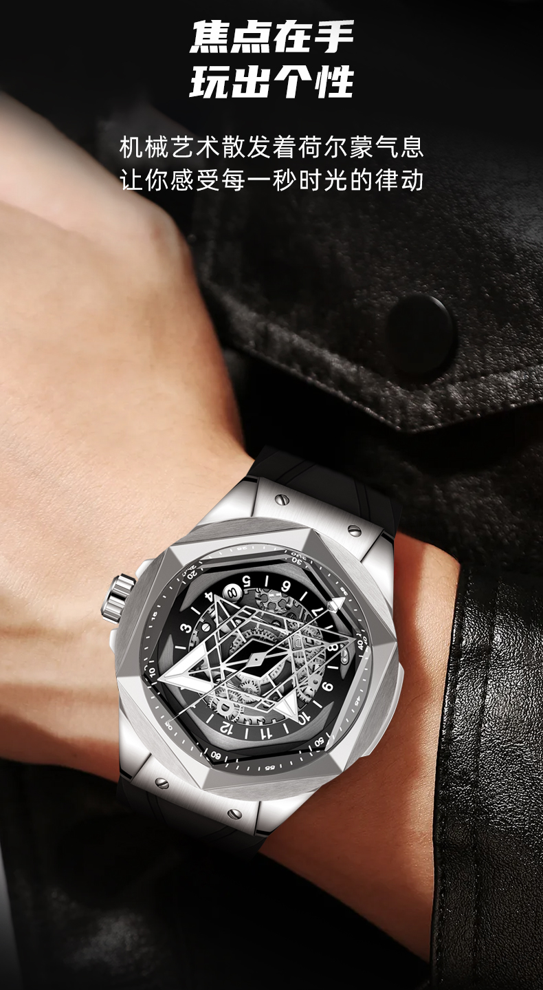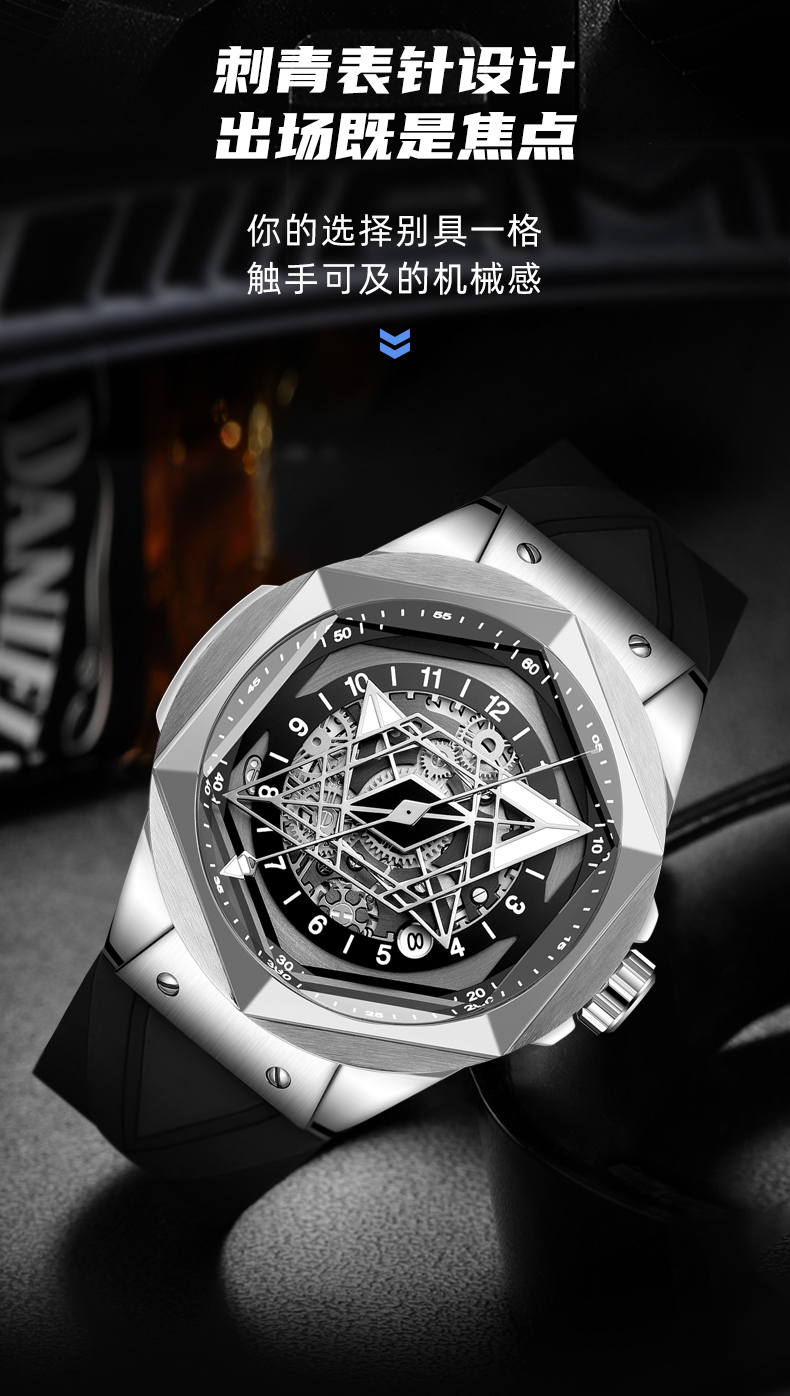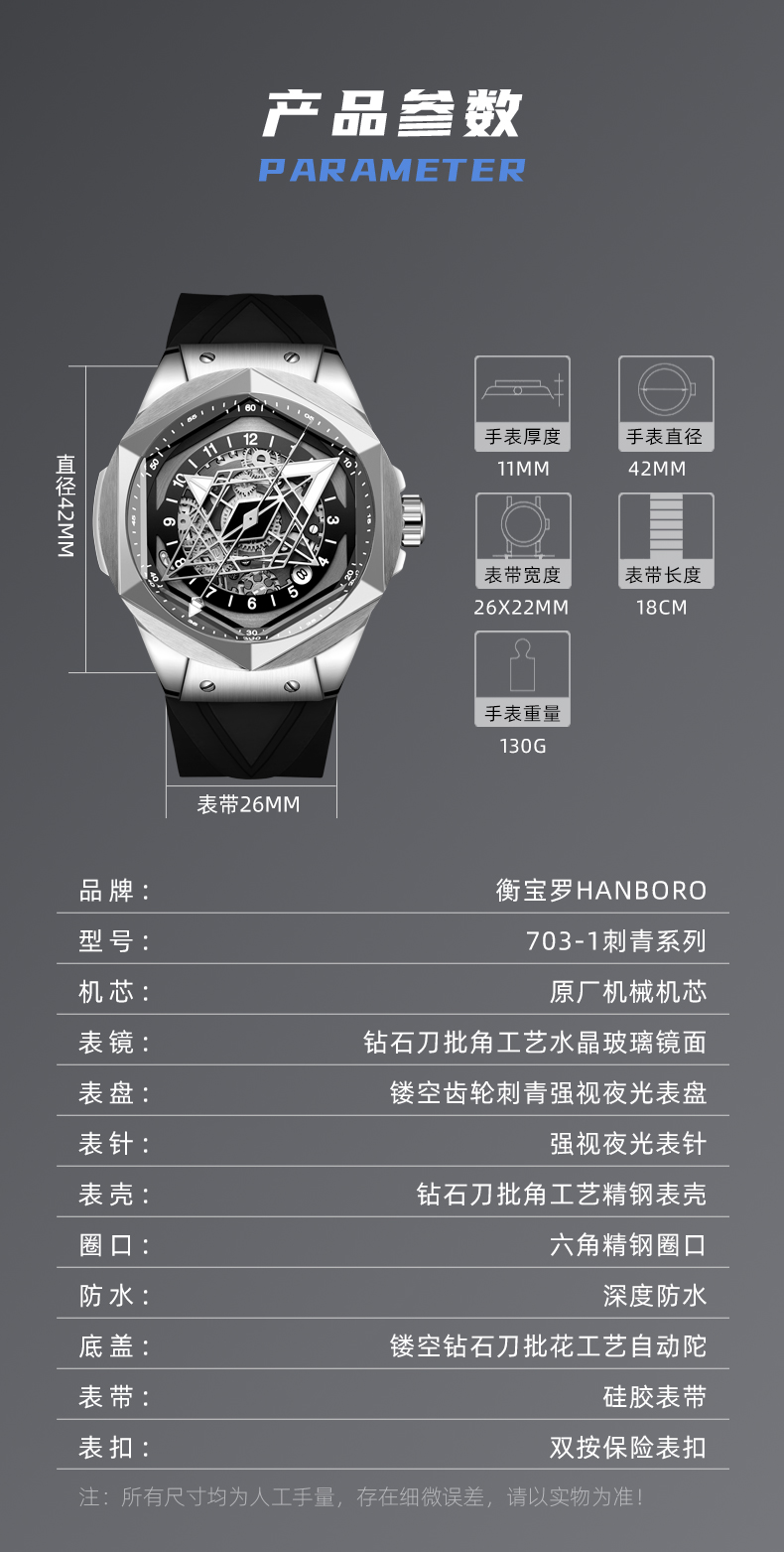 HANBORO Tattoo Series Men's Automatic Mechanical Watch Men Luminous Waterproof Men's Watch 703-1