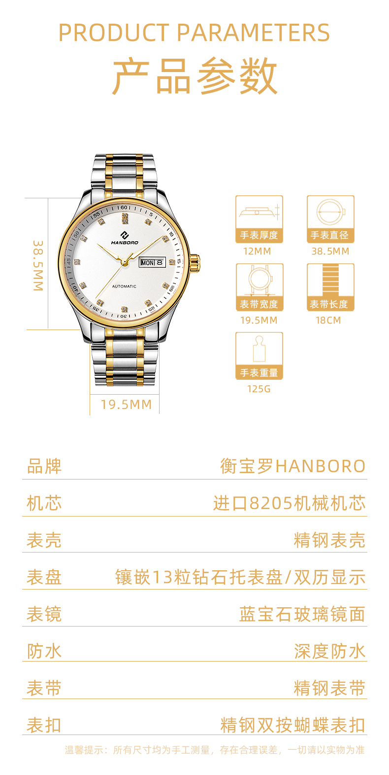 HANBORO Men's Automatic Mechanical Watch Fashion Business Men's Watch 827
