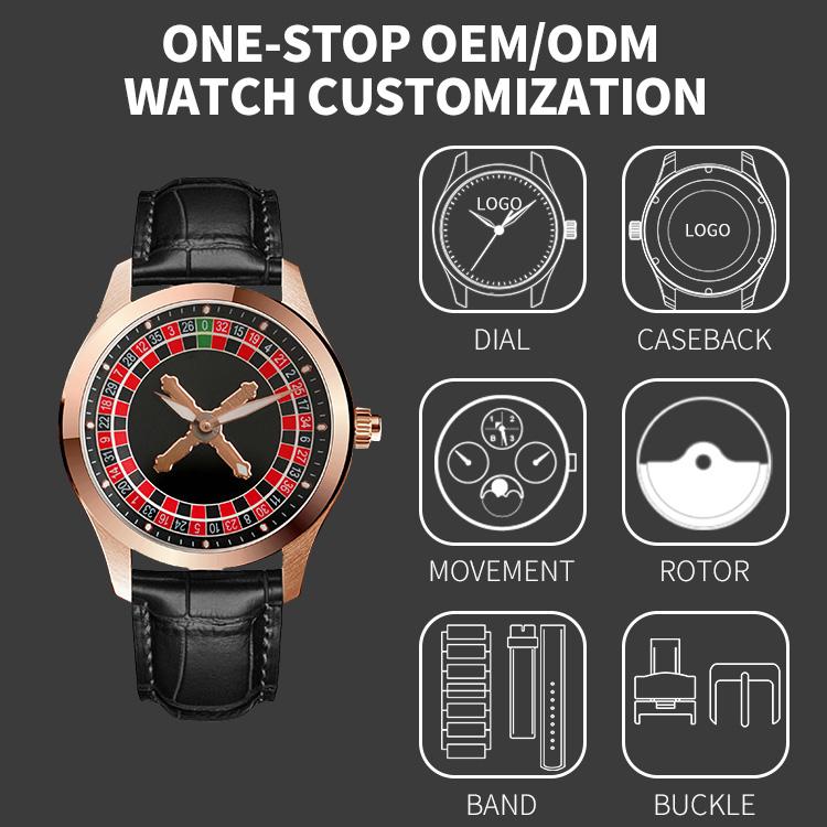 Customized Design: We offer personalized watch design services,creating unique watches based on our customers' preferences and needs.We can customize the dial,case,strap,and other aspects to ensure that each watch is one-of-a-kind.