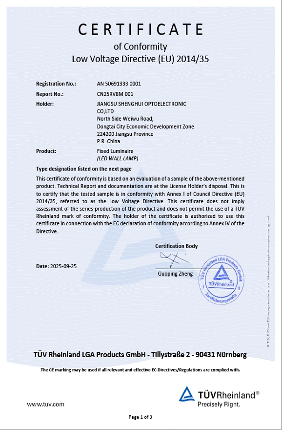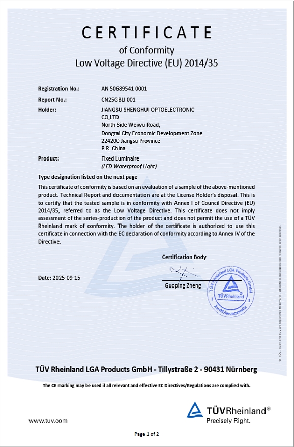 Jiangsu Shenghui Optoelectronic Co Ltd