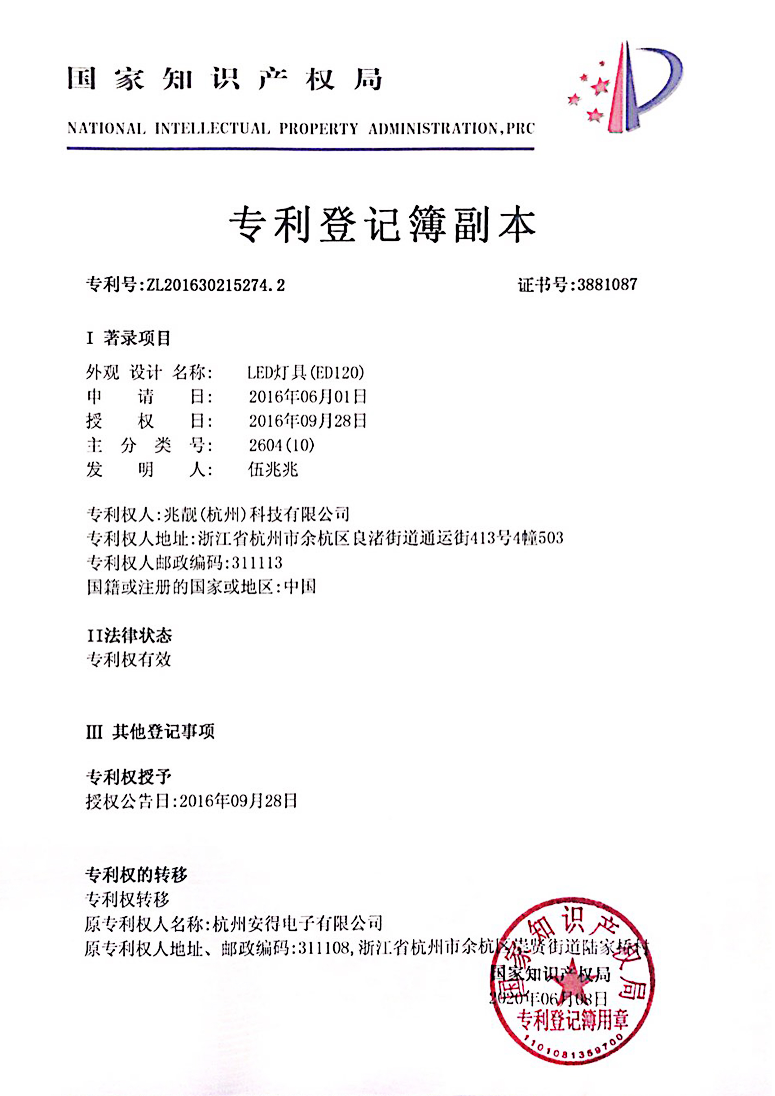 PATENT CERTIFICATE
