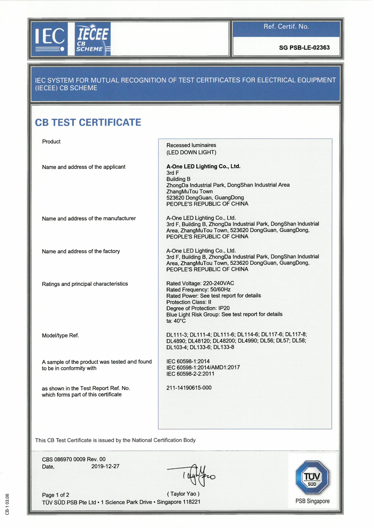 CB TEST CERTIFICATION