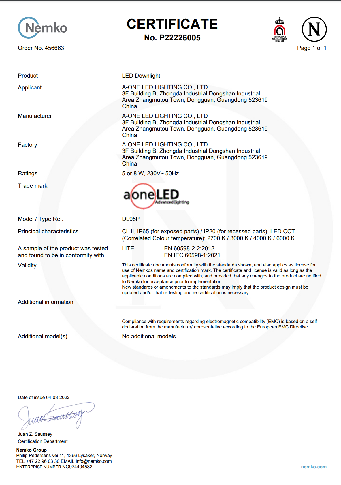 NEMKO CERIFICATION